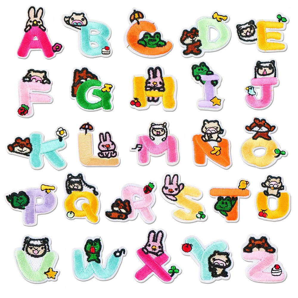 컴퓨터 자수 창의적인 만화 컬러풀한 26 영문자 자수 패치 아동복 유치원 장식 DIY 패치스토어 가기