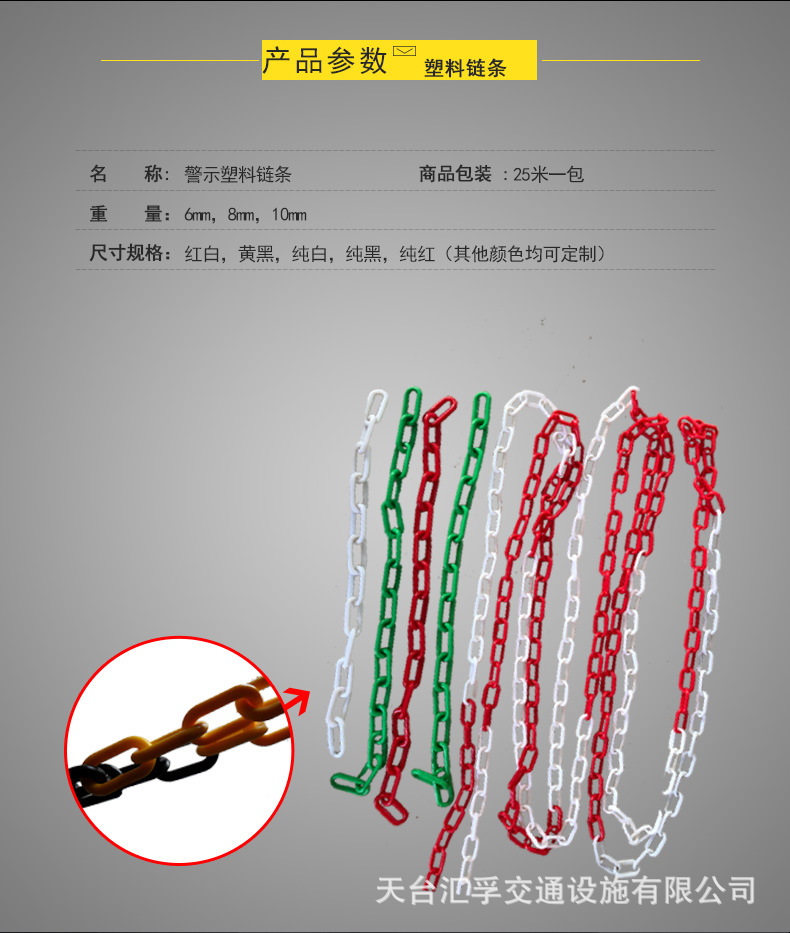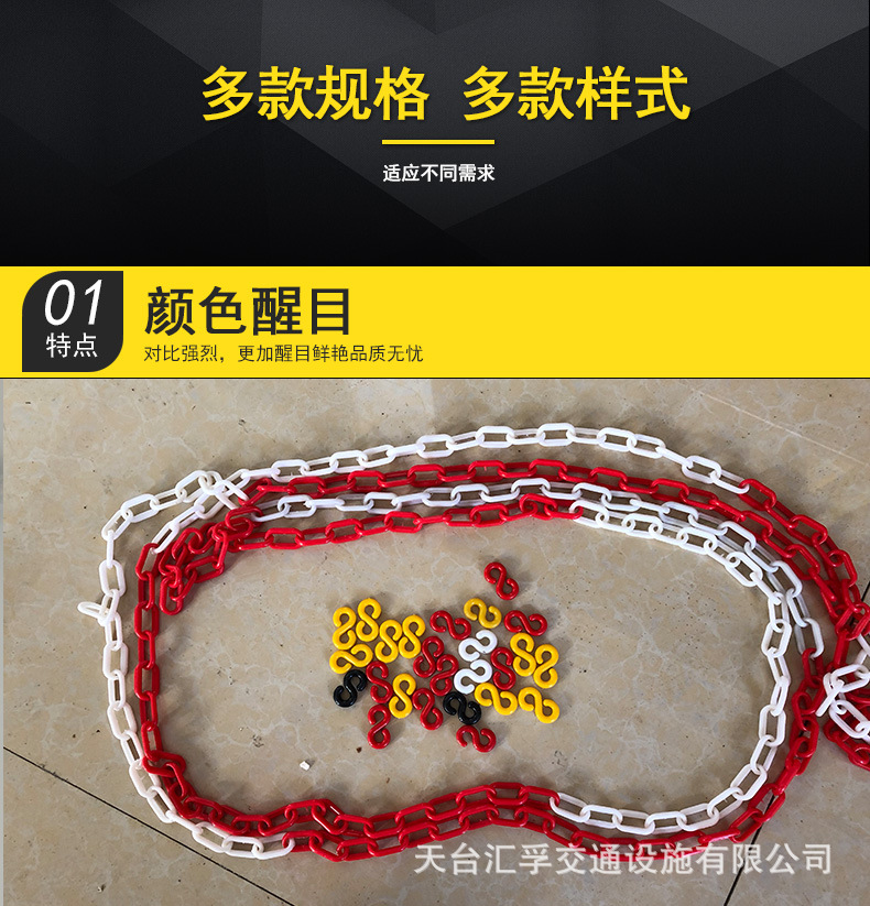 Huifu 플라스틱 경고 체인 빨간색과 흰색 플라스틱 체인 도로 콘 체인 격리 체인 매달려 의류 노란색과 검은 색 체인