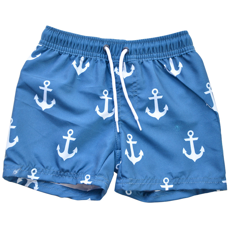 어린이 비치 바지 중소 규모 어린이 다크 블루 후크 프린트 레이스 업 귀여운 소년 느슨한 스포츠 수영 트렁크 휴일스토어 가기
