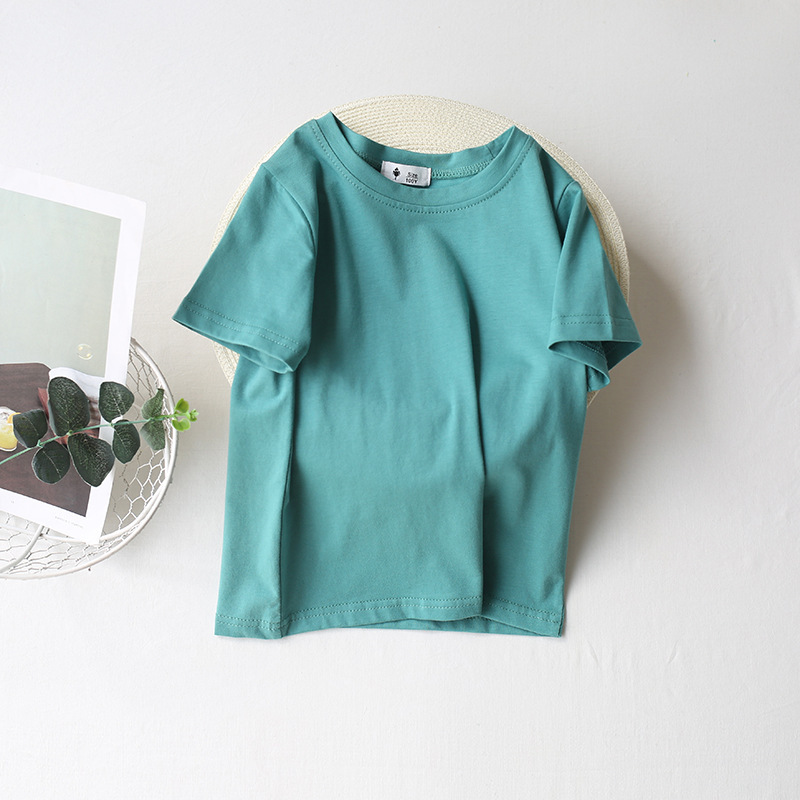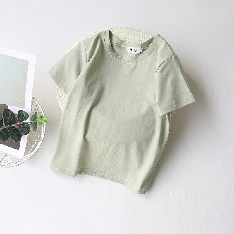 대외 무역 캔디 컬러 t2026 여름 신상 남아 기본 무지 상의 여아 베이비 만능 반팔 면 티셔츠스토어 가기
