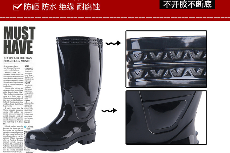 스틸 발가락 안티 스매싱 하이 배럴 보호 장화 남성 1801 하이 탑 3 방지 노동 보호 신발 발 보호 작업 장우 워터 신발 고무 신발