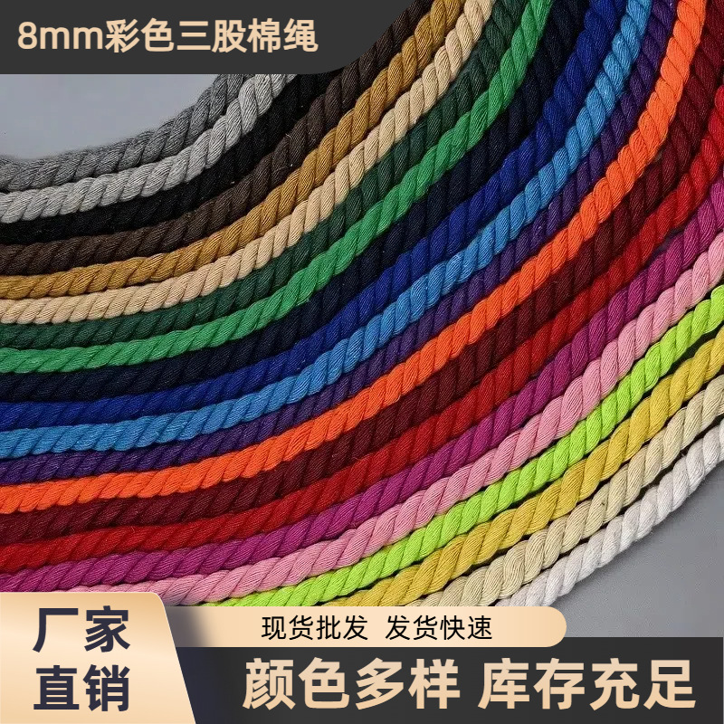 8mm 3 가닥 컬러 코튼 로프 수제 diy 로프 트위스트 장식 로프 졸라 매는 끈 바인딩 로프 의류 액세서리스토어 가기