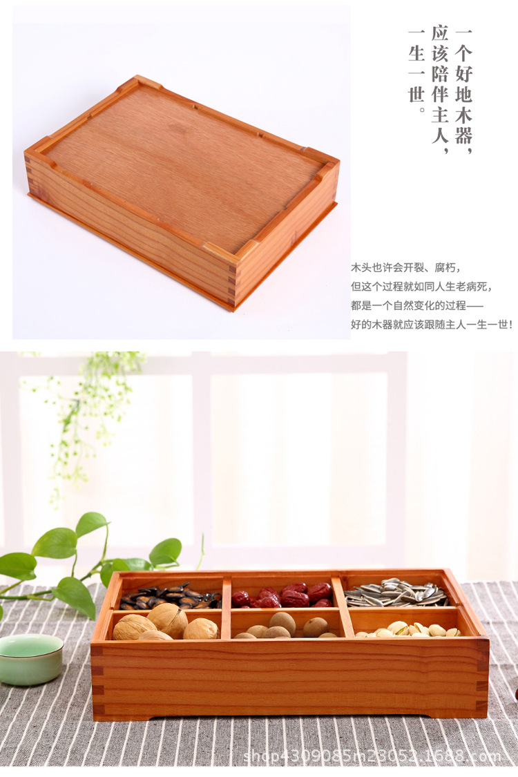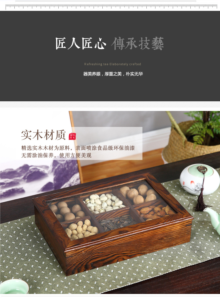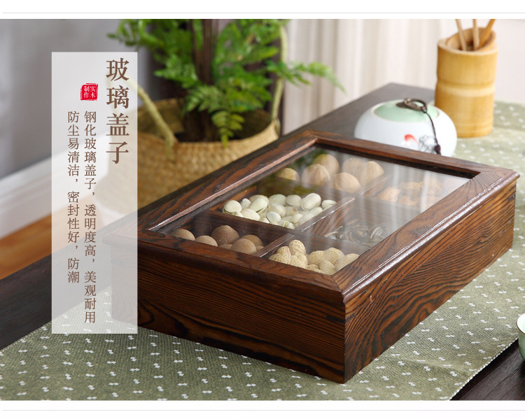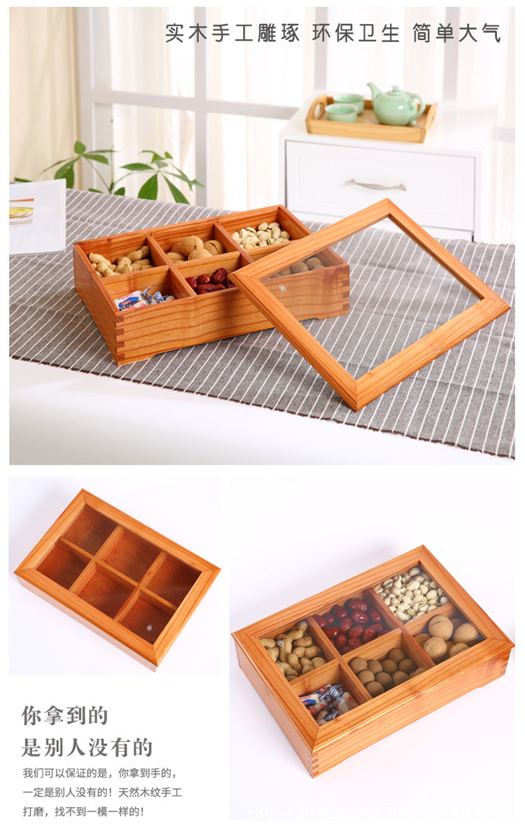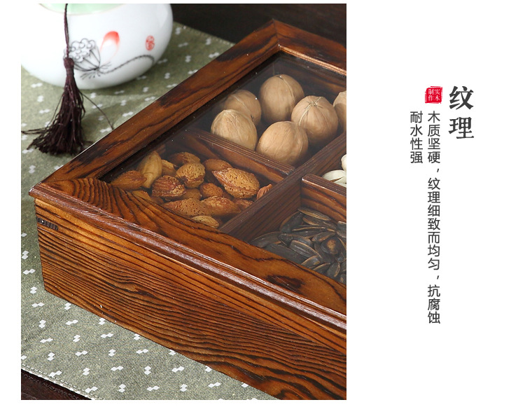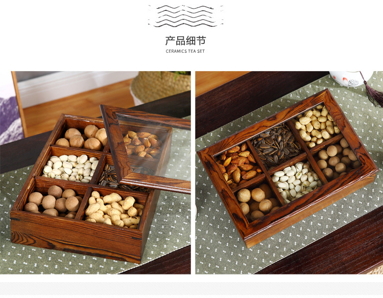 중국 새해 분할 너트 빈티지 저장 접시 간식 데스크탑 과일 접시 배치 뚜껑이있는 웨딩 단단한 나무 가정용 건조 과일 상자