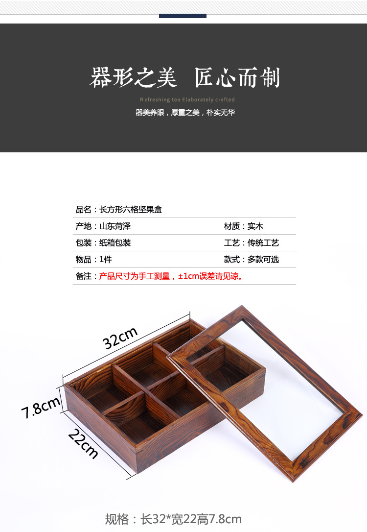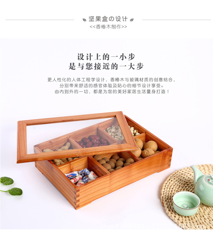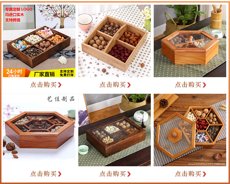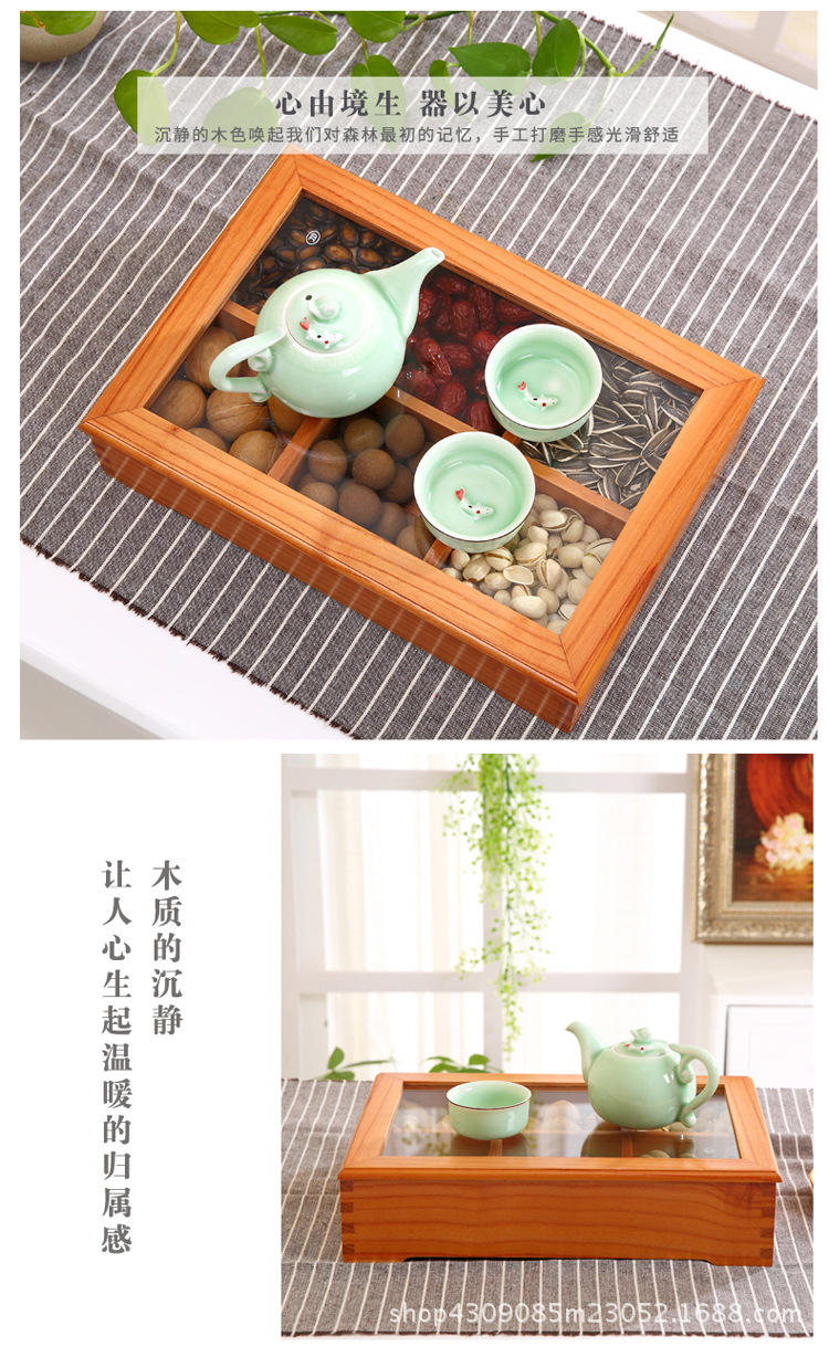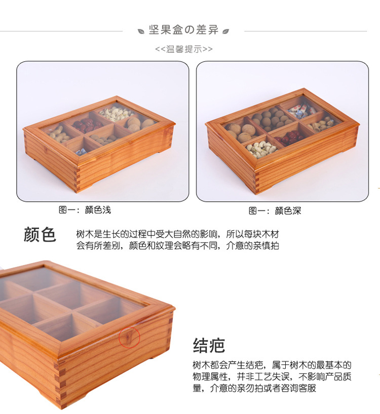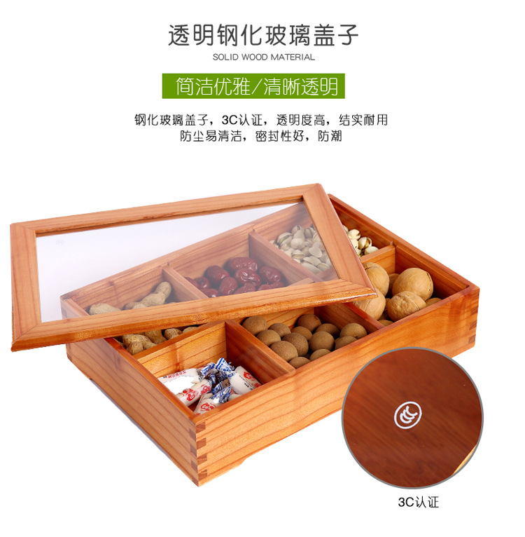 중국 새해 분할 너트 빈티지 저장 접시 간식 데스크탑 과일 접시 배치 뚜껑이있는 웨딩 단단한 나무 가정용 건조 과일 상자