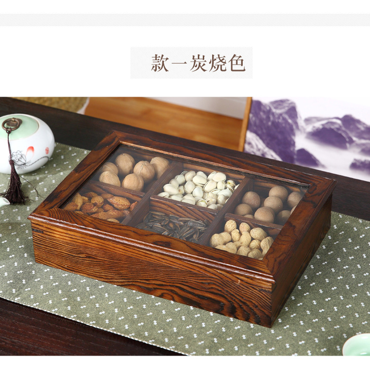 중국 새해 분할 너트 빈티지 저장 접시 간식 데스크탑 과일 접시 배치 뚜껑이있는 웨딩 단단한 나무 가정용 건조 과일 상자스토어 가기