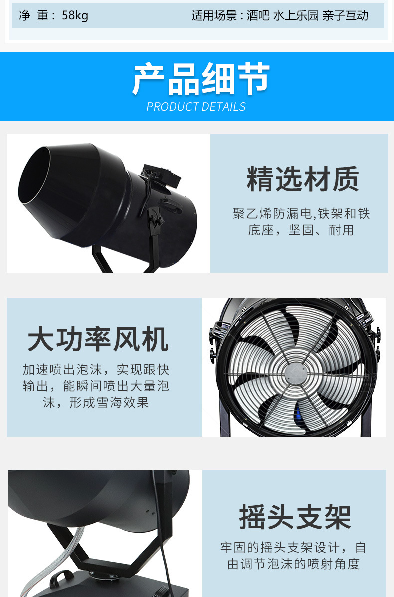 대형 폼 머신 야외 흔들림 헤드 제트 유치원 폼 파티 스테이지 워터 파크 특수 폼 파우더