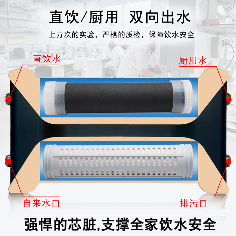 此款产品为一线品牌代工同款,产品与以往产品的创新在于产品有完善了超滤膜不能完全过滤余氯的情况,加了载银活性炭可以过滤余氯。我司还在原有基础改革了大通流量,产水比市面上的双子星出水量超出2倍的流量,还有双出水口,适合厨房和直饮水使用。