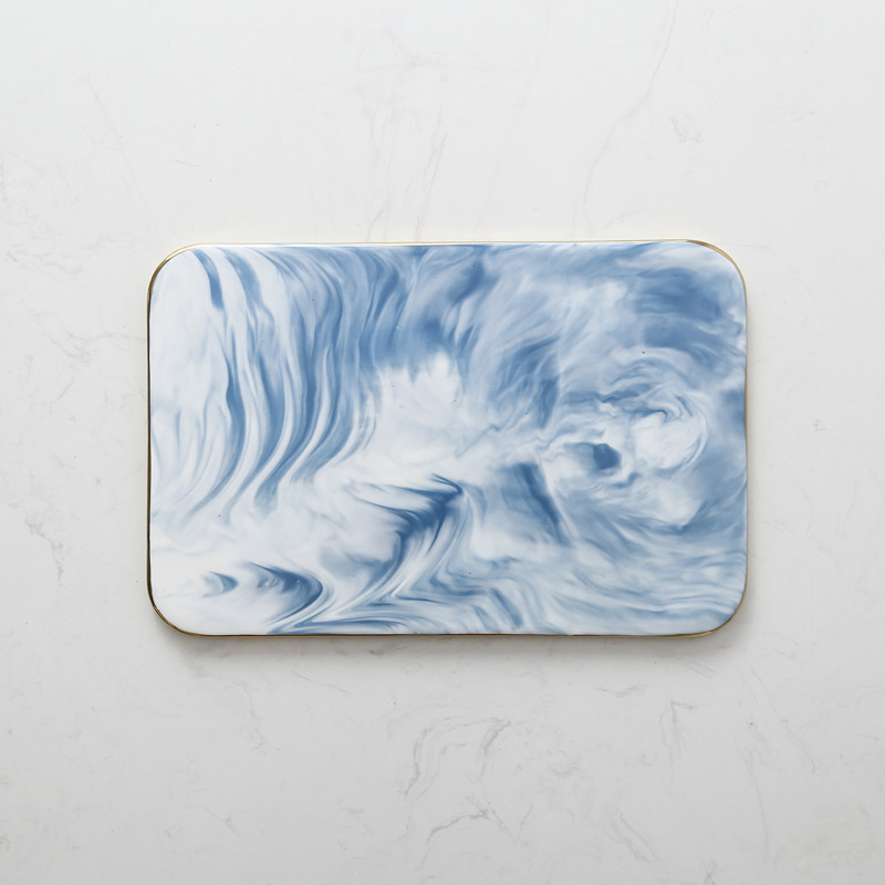 북유럽 대리석 세라믹 트레이 케이크 스낵 무스 플레이트 서양 음식 스시 플레이트 직사각형 아침 식사 트레이
