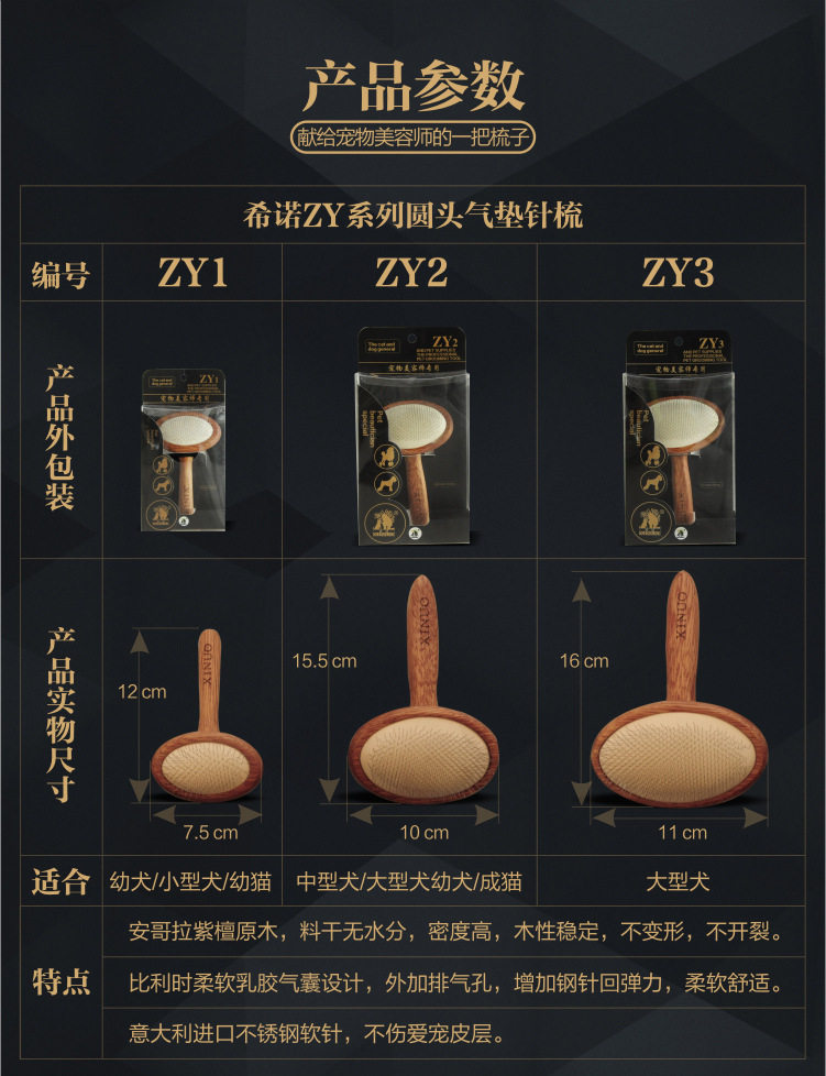 히노 개 애완 동물 용품 빗 열 라운드 헤드 스퀘어 라텍스 에어 쿠션 이탈리아 바늘 빗 미용사 교정