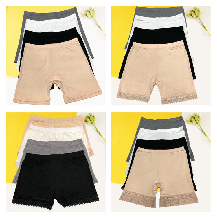 本厂这一系列安全裤全部选用克重为莫代尔165g,三分裤,四分裤,五分裤,口袋款 ,还有有大花边,小花边,平角款式,黑色,白色,杏色,灰色4个色,多个码可选。