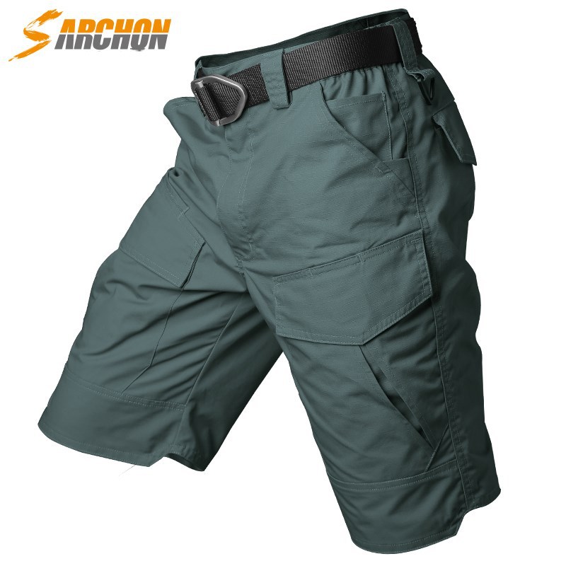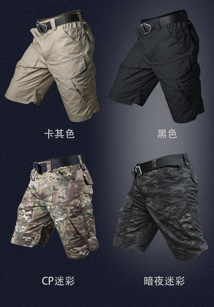 Angbi 여름 전술 바지 남성용 속건성 군용 위장 반바지 멀티 포켓 야외 작업복 반 바지 5부 바지 방수