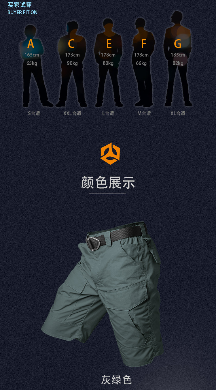 Angbi 여름 전술 바지 남성용 속건성 군용 위장 반바지 멀티 포켓 야외 작업복 반 바지 5부 바지 방수스토어 가기
