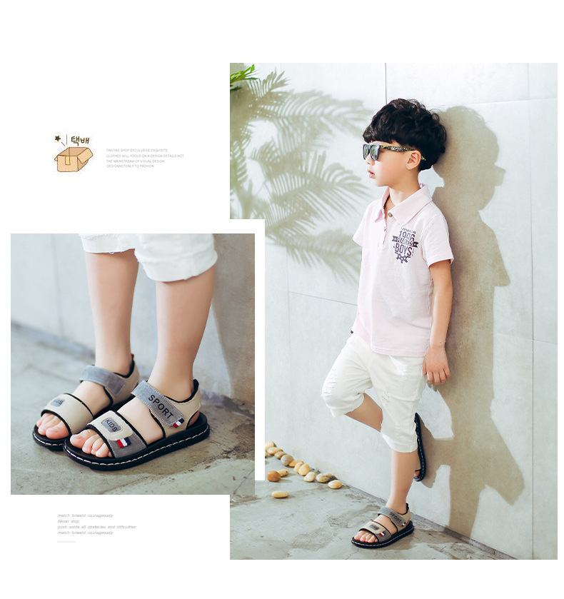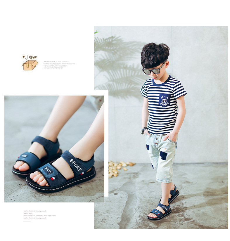 소년 샌들 2025 여름 한국 스타일 중대형 어린이 및 어린 소년 해변 신발 벨크로 부드러운 밑창 패션 아동 신발스토어 가기