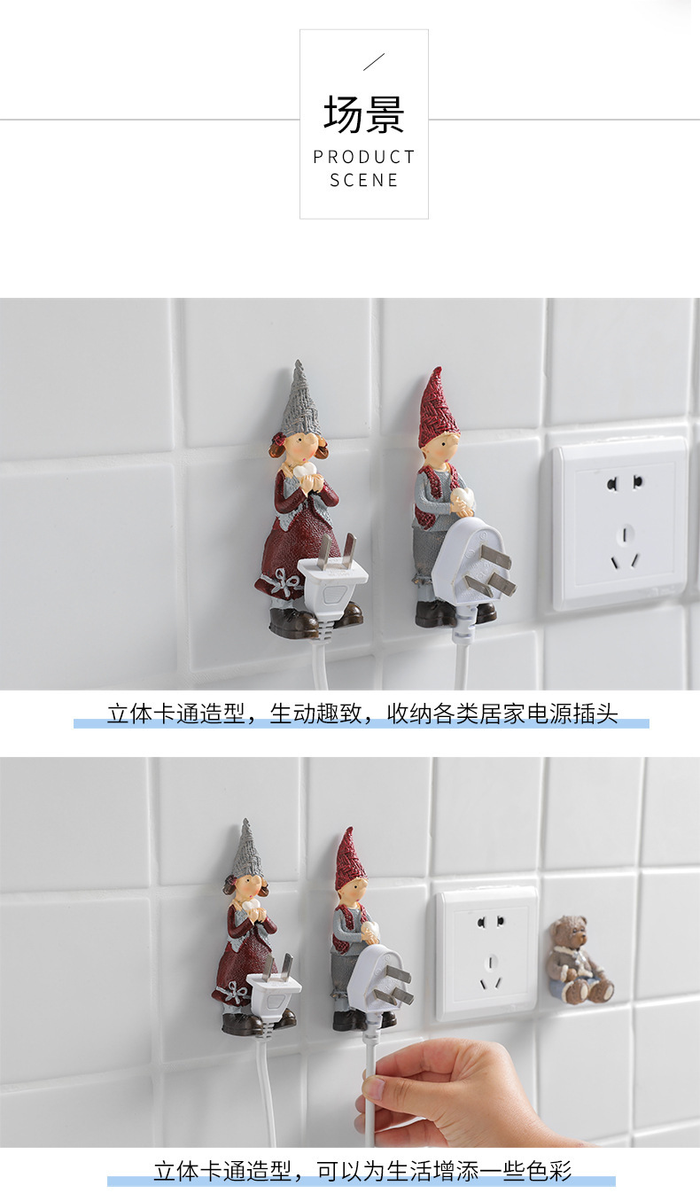 Q 5242 만화 수지 소켓 전원 후크 스토리지 랙 강력한 접착 후크 플러그 접착 홀더 크리 에이 티브스토어 가기