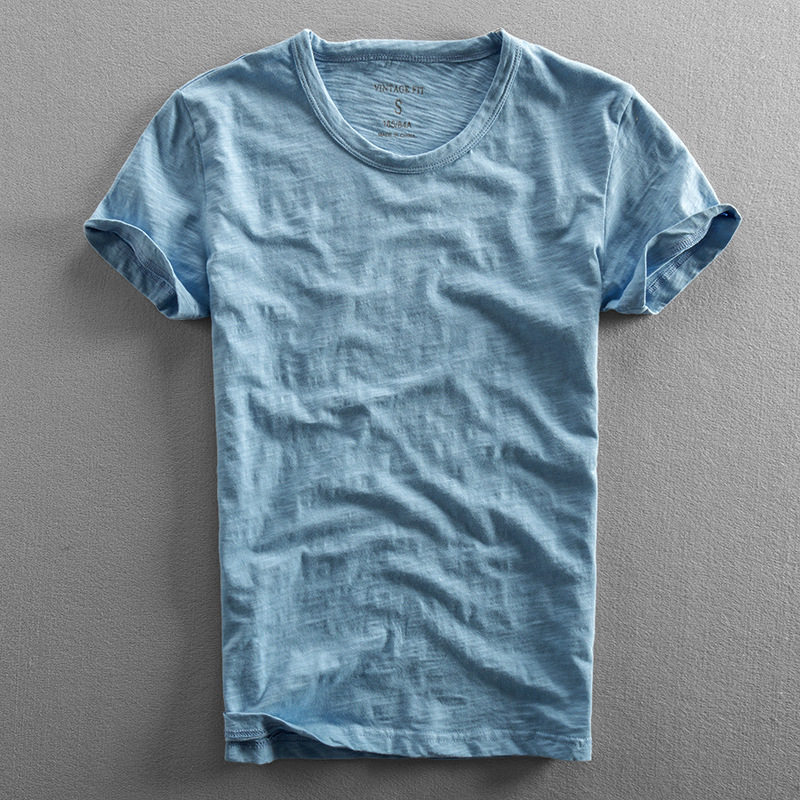 여름 신작 남성 캐주얼 티셔츠 얇은 통기성 워시 코튼 남성 솔리드 컬러 코튼 소재 바닥 셔츠 ins-daohua