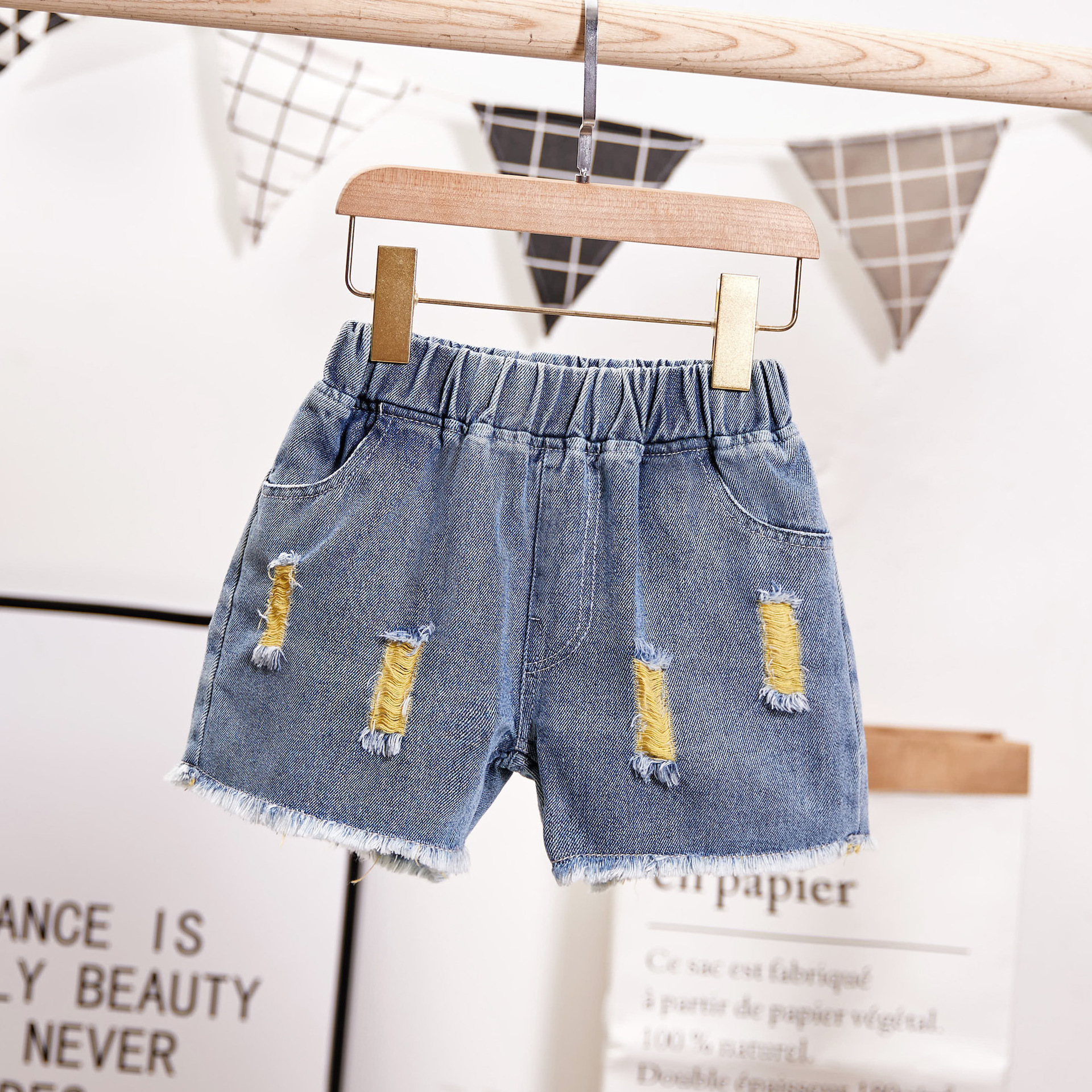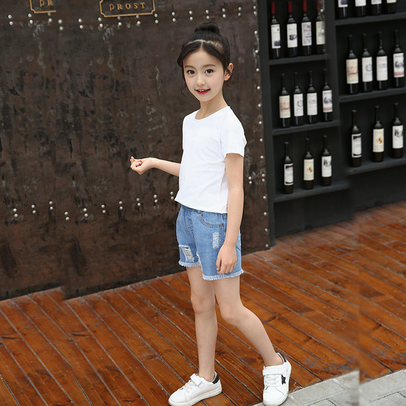 여름 어린이 태슬 찢어진 여아 데님 반바지 키보드 라벨 패션 데님 핫팬츠 드롭쉬핑스토어 가기