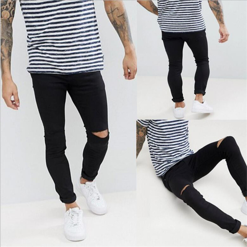 봄과 여름 하이 스트리트 트렌디 남성 청바지 대형 찢어진 무릎 청바지 남성용 슬림핏 스트레치 팬츠스토어 가기
