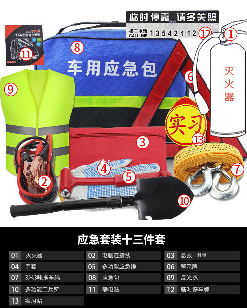 차량용 비상 키트 세트, 자동차 다기능 비상 구조 키트, 도구 세트, 연간 검사 차량용