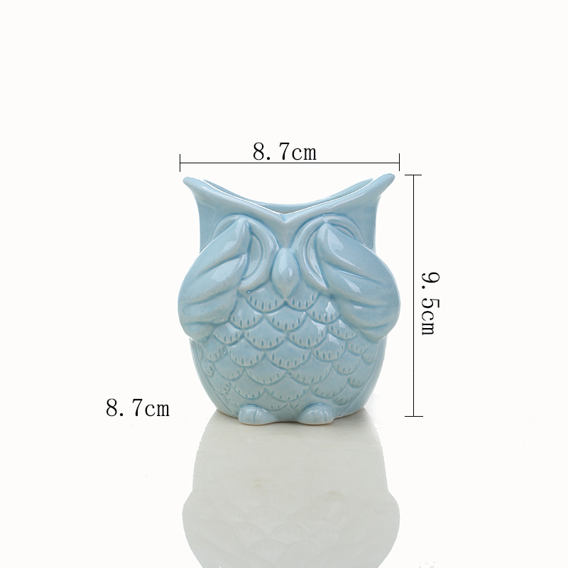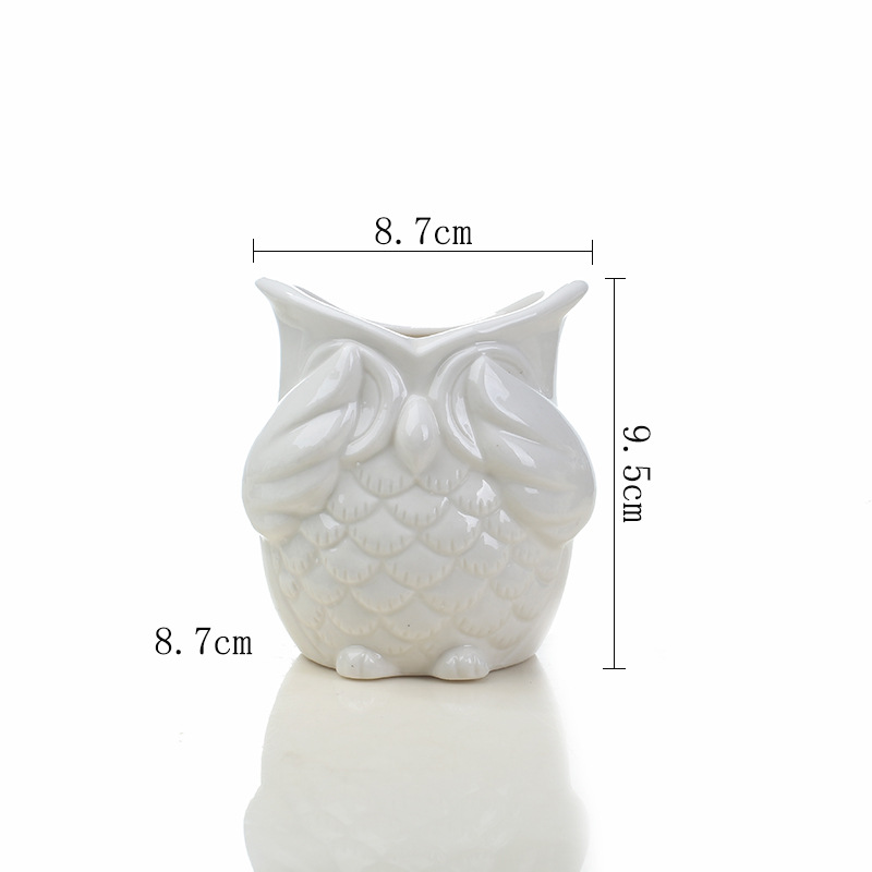 일본 식료품 데스크탑 발코니 올빼미 다육 꽃 냄비 창조적 인 가정 원예 녹색 식물 흰색 꽃 세라믹스토어 가기