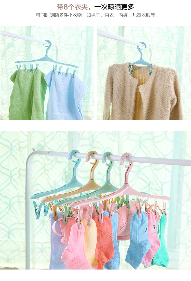 강력한 방풍 양말 클립 다기능 플라스틱 걸이 8 클립 건조 속옷 걸이 회전 건조대