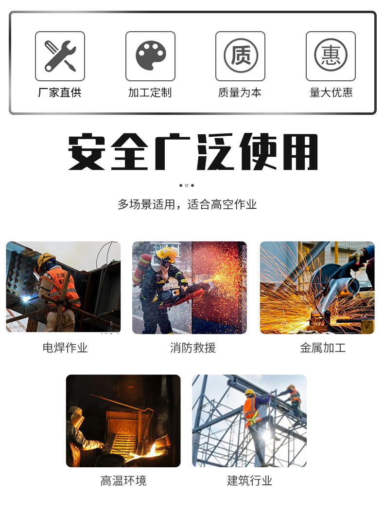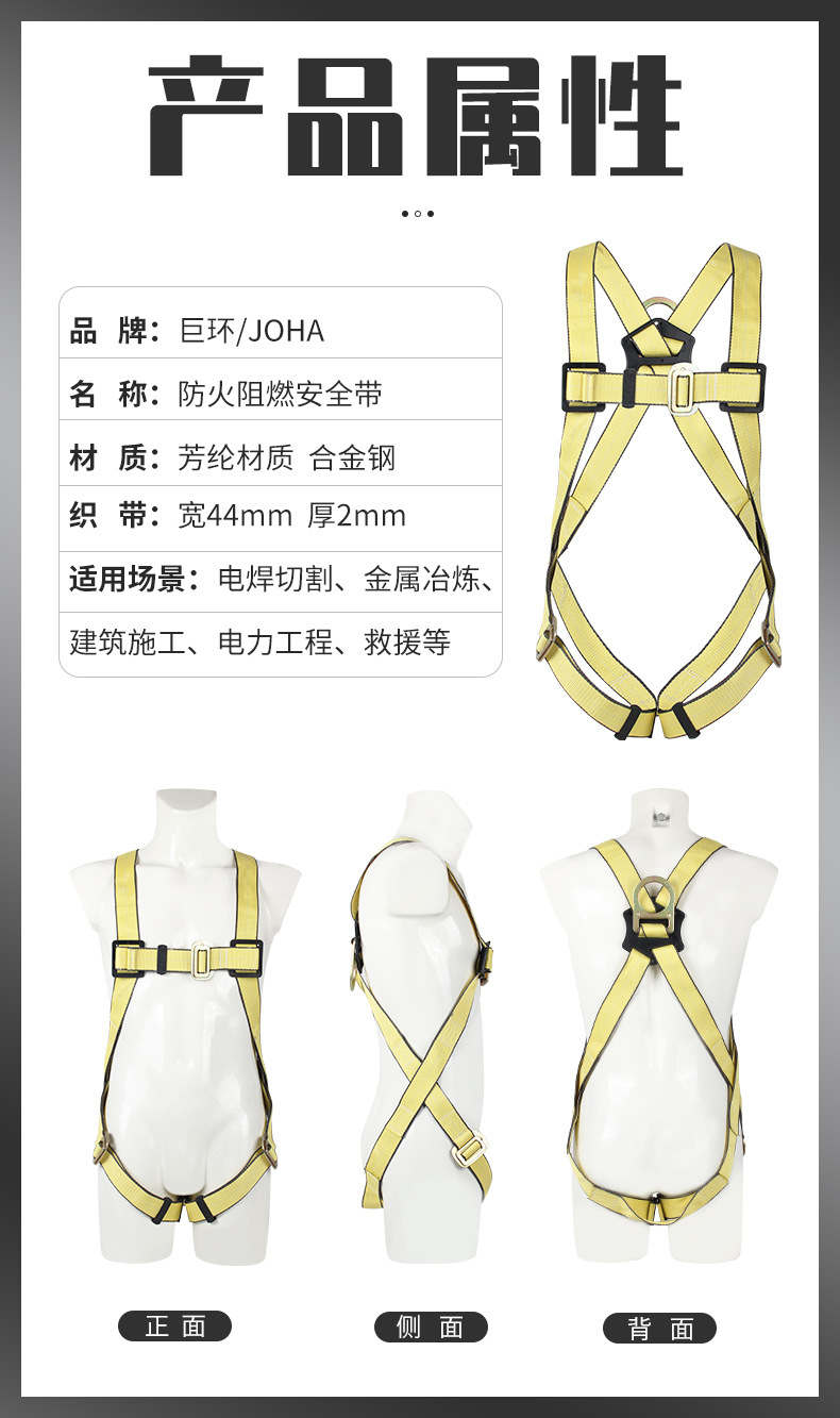 자이언트 링 직접 아라미드 난연 안전 벨트 화재 안전 벨트 화재 예방 고온 마모 저항 이중 등 공중 작업