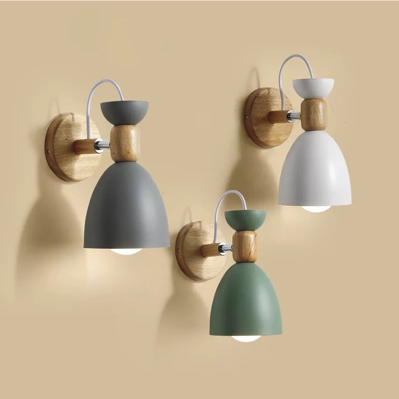 북유럽 단단한 나무 침실 벽 램프 현대 간단한 마카롱 배경 벽 램프 거실 창조적 인 통로 침대 옆 램프