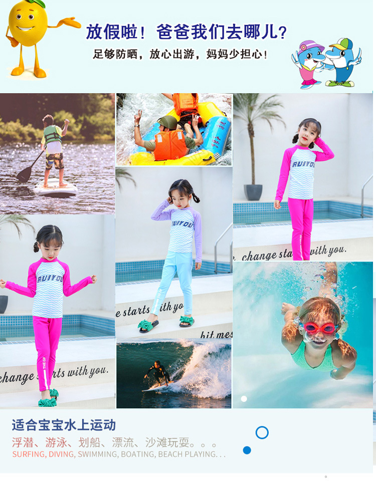 Ruiyou 새로운 어린이 수영복 R200 소년과 소녀 선 스크린 바지 수영 바지 속건 방수 세트 다이빙 바지스토어 가기