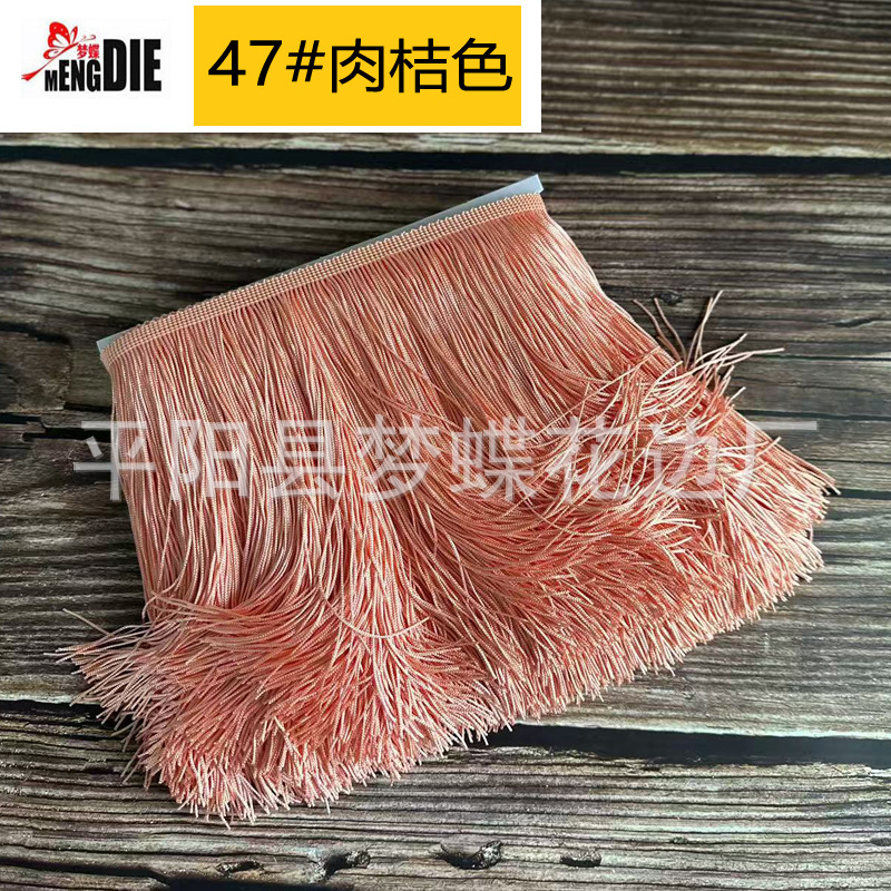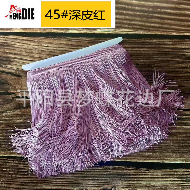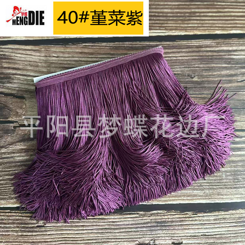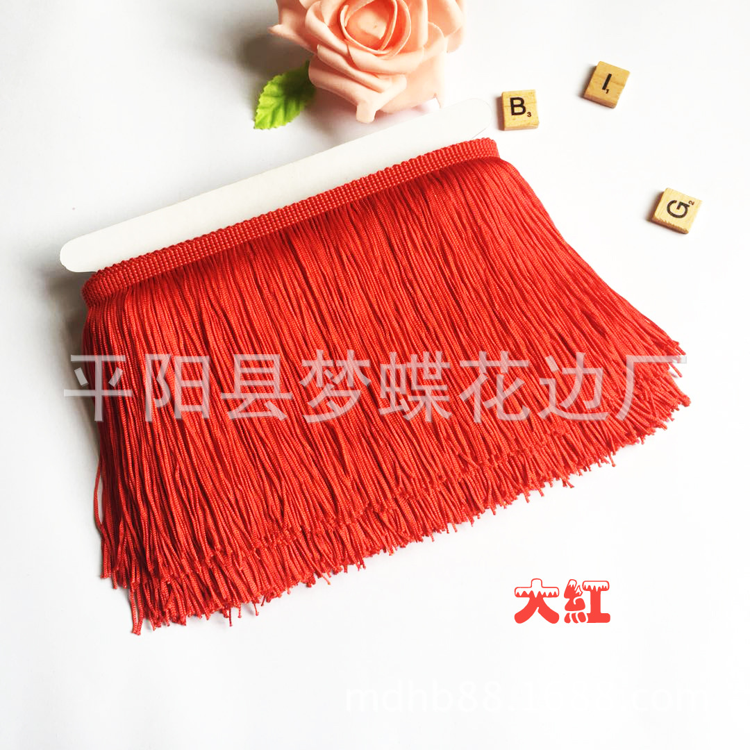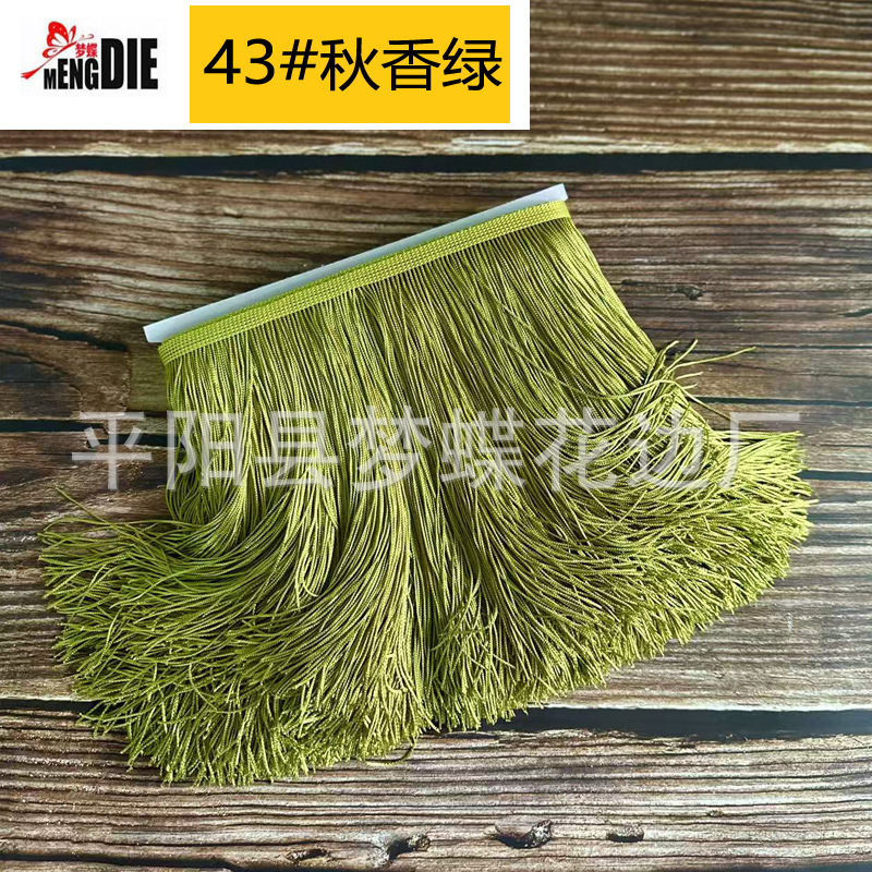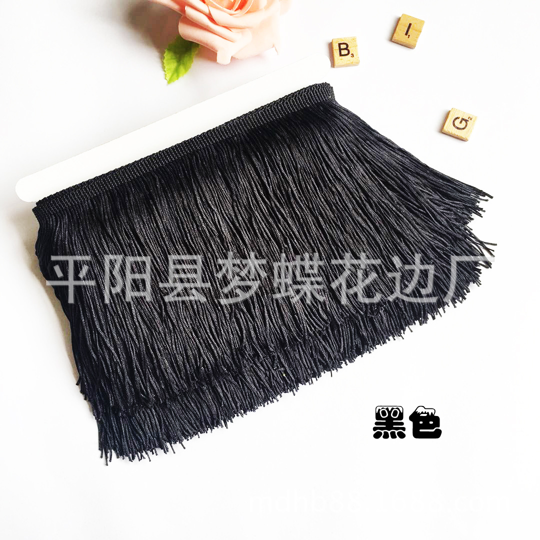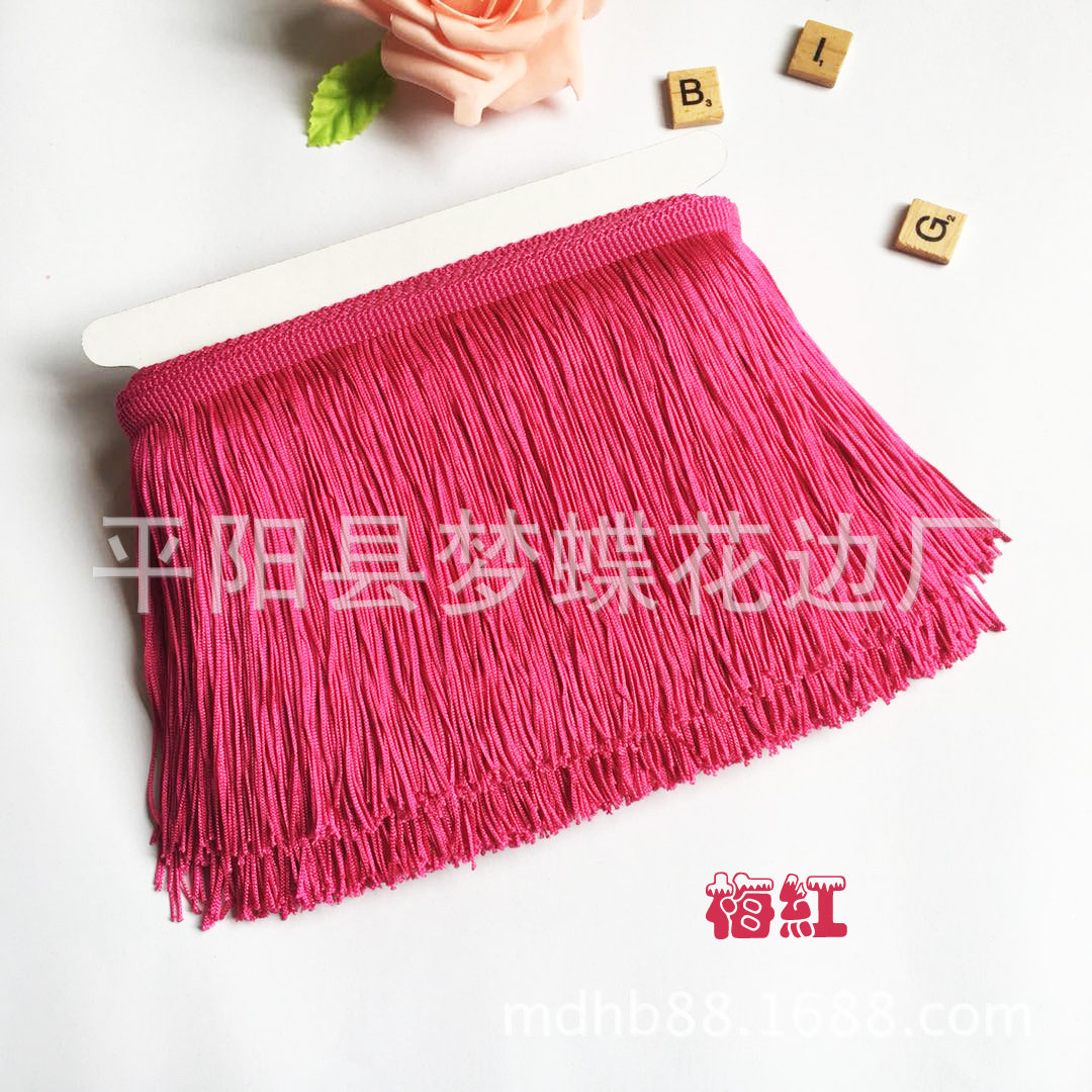 平阳县梦蝶花边厂专注:舞蹈服流苏、涤纶排须、人造丝流苏、锦纶排苏、棉线排须、珠片花边、金银线花边、亮片花边、