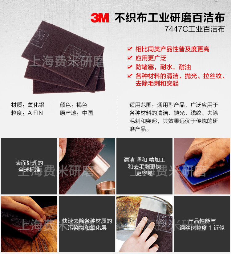 3M 7447C 부직포 산업용 수세미 제조업체 직판 광택 연마 디버링 수세미 청소용 내구성스토어 가기