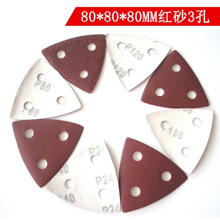 삼각형 레드 샌드페이퍼 80*80*80mm 3홀 삼각형 샌드페이퍼 레드 샌드 자가 접착식 플로킹 샌드페이퍼 만능 액세서리스토어 가기