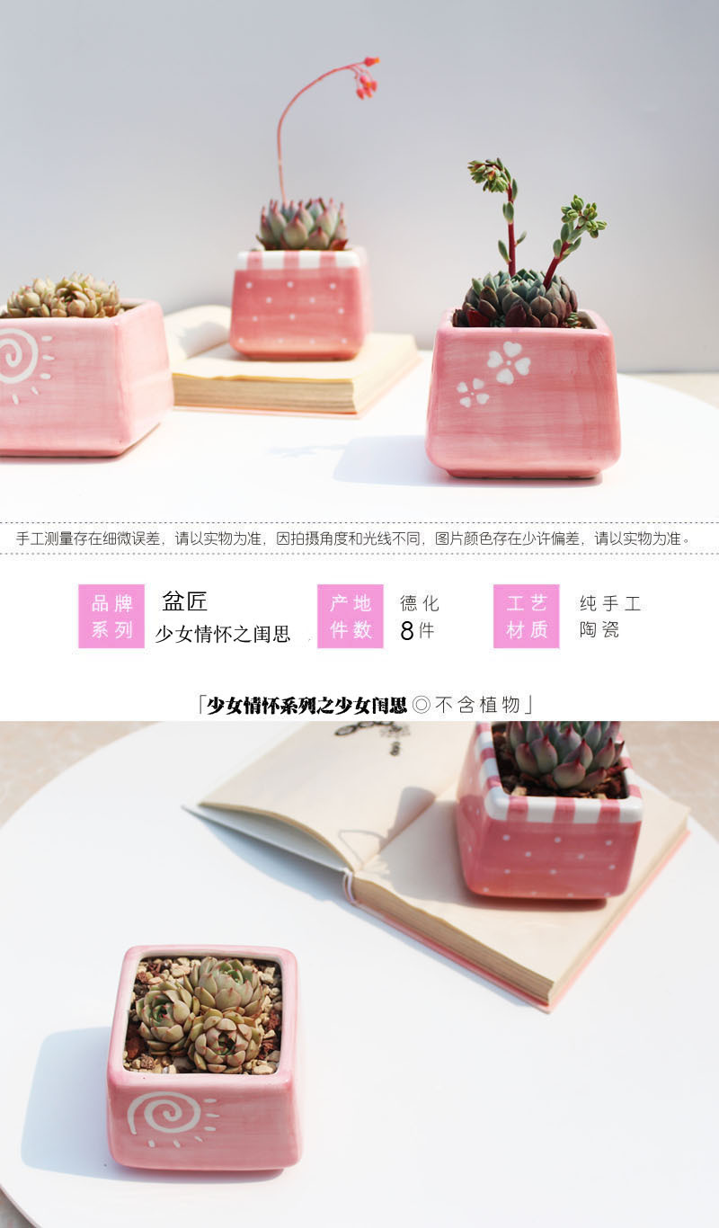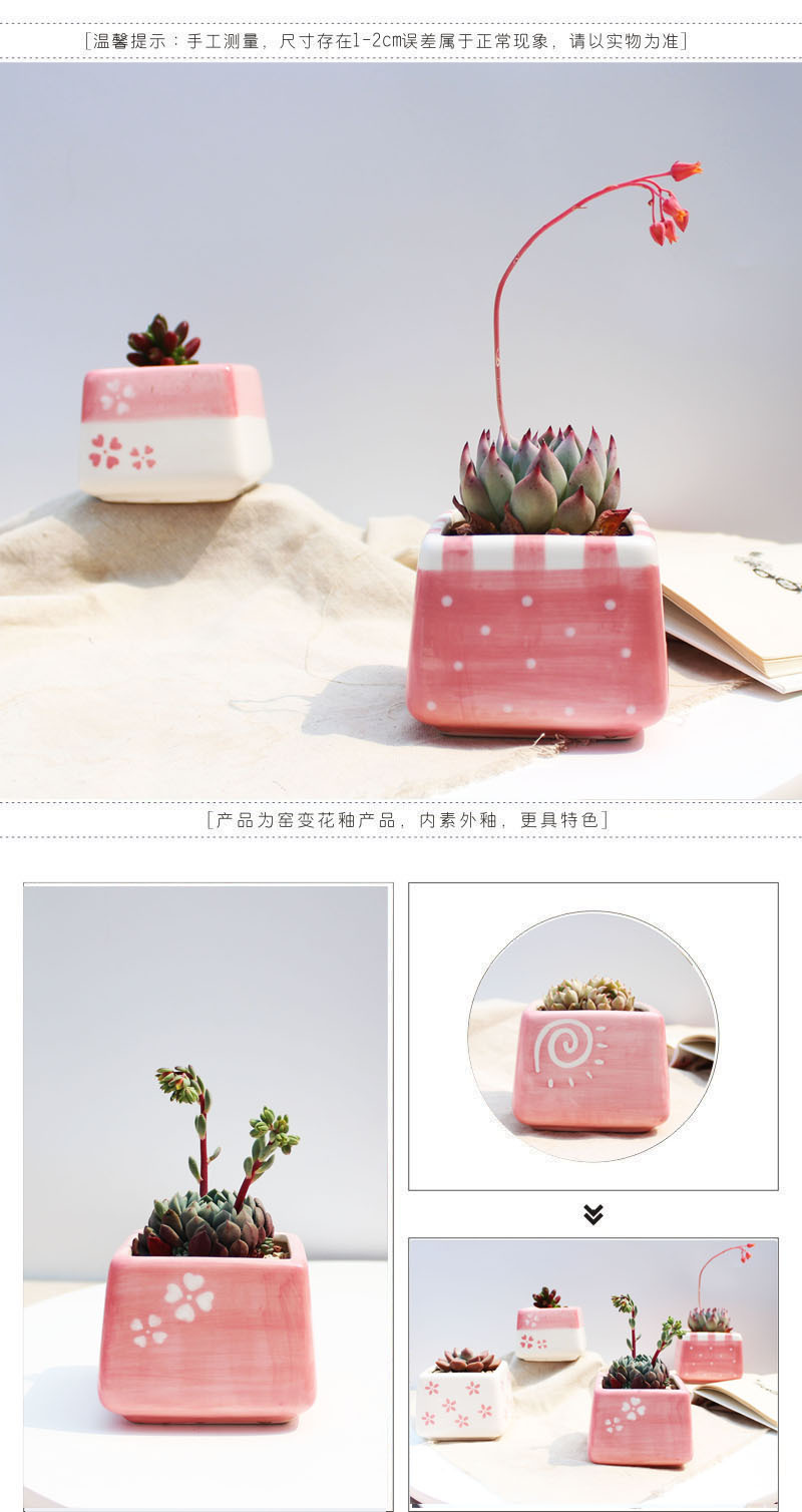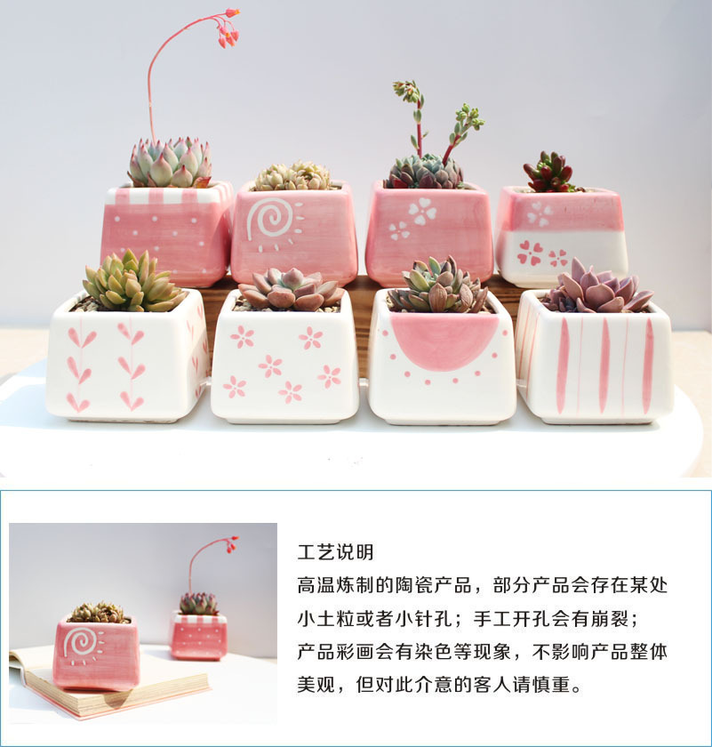 크로스 보더 타오바오 베스트 셀러 핑크 소녀 심장 광장 다육 화분 손으로 그린 식물 꽃 용기 아마존스토어 가기