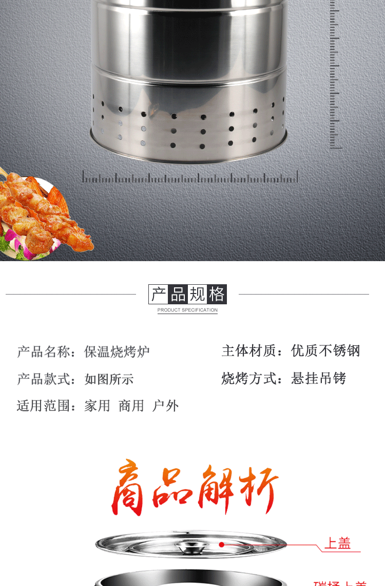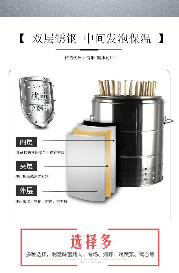 烤炉炉体为不锈钢材质,内部碳网属于铁质(由于天气原因个别的或许会生锈,介意者慎拍),另外签收前请当着快递员开箱验货,发现破损或者变形请拒收,一旦签收视为签收后的宝贝完好无损。