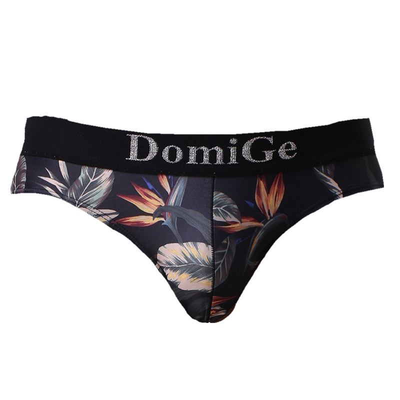5150 此款个性的印花中腰三角内裤抢眼夺目,前中立体裁剪先进的生产设备使走线细密均匀,让敏感区域无不适之感。冰丝锦氨面料,薄柔滑,给“小弟”有个舒适的自由空间并无压迫之感。后片一片剪裁贴体合身勾勒出男性臀部线条,释放出强有力的动感效果。3.5cm黑底柔性腰带银丝LOGO附于其中耀眼而不失沉稳。DomiGe杜米国际品牌专注品位男人!