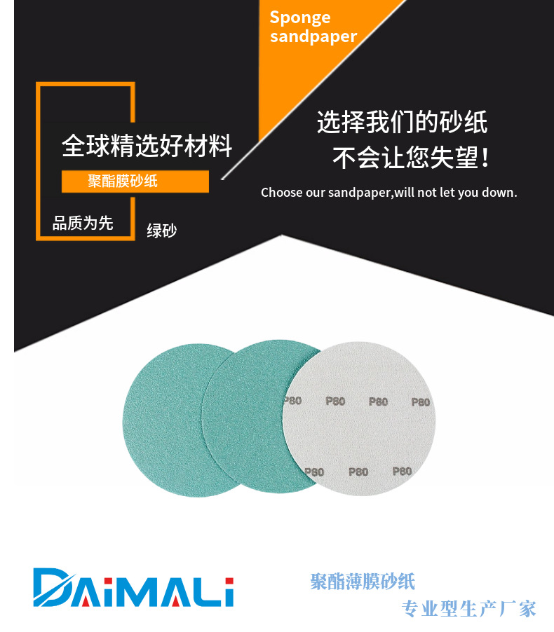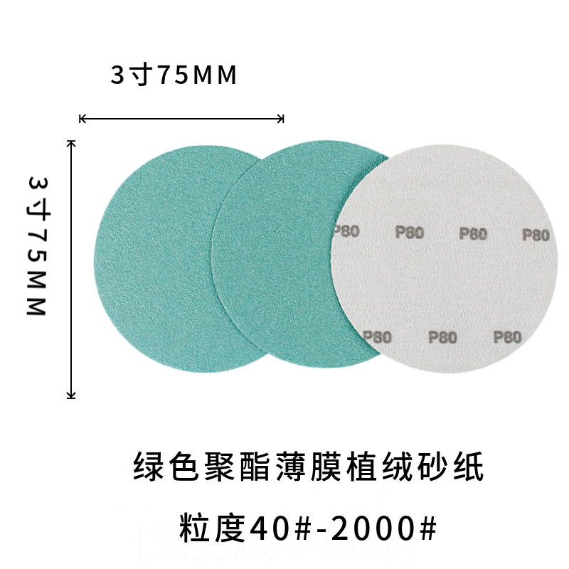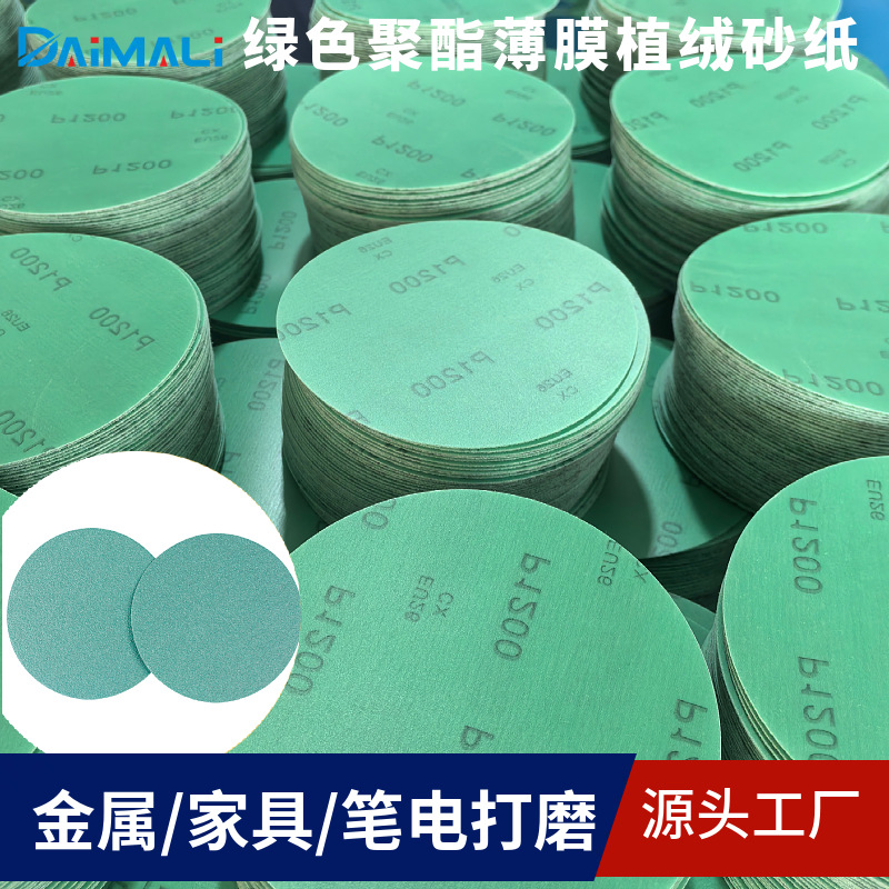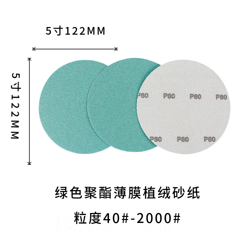 녹색 폴리에스터 필름 플로킹 사포 5inch 3inch 2inch 자동차 퍼티 연마 녹색 사포 광택 시트