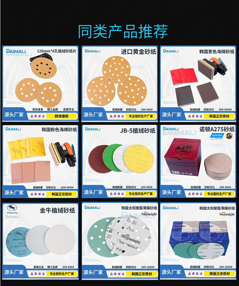녹색 폴리에스터 필름 플로킹 사포 5inch 3inch 2inch 자동차 퍼티 연마 녹색 사포 광택 시트스토어 가기
