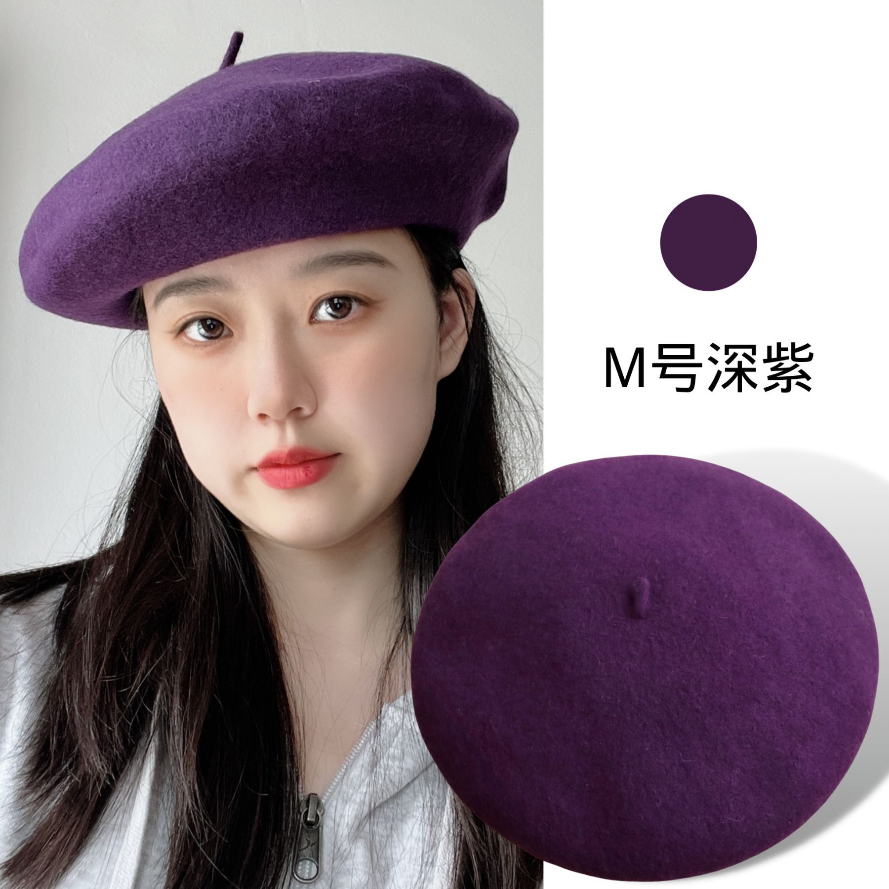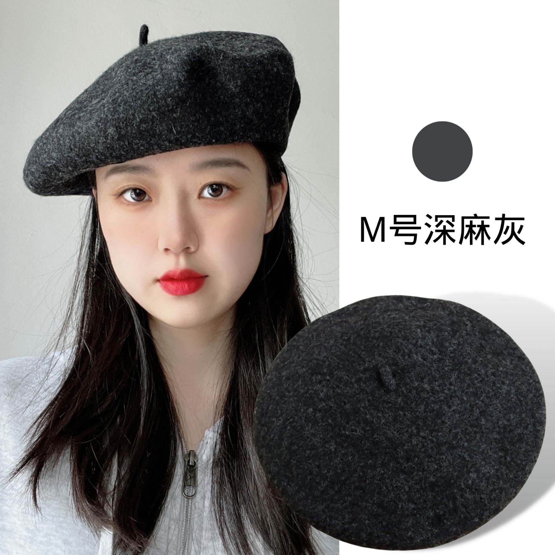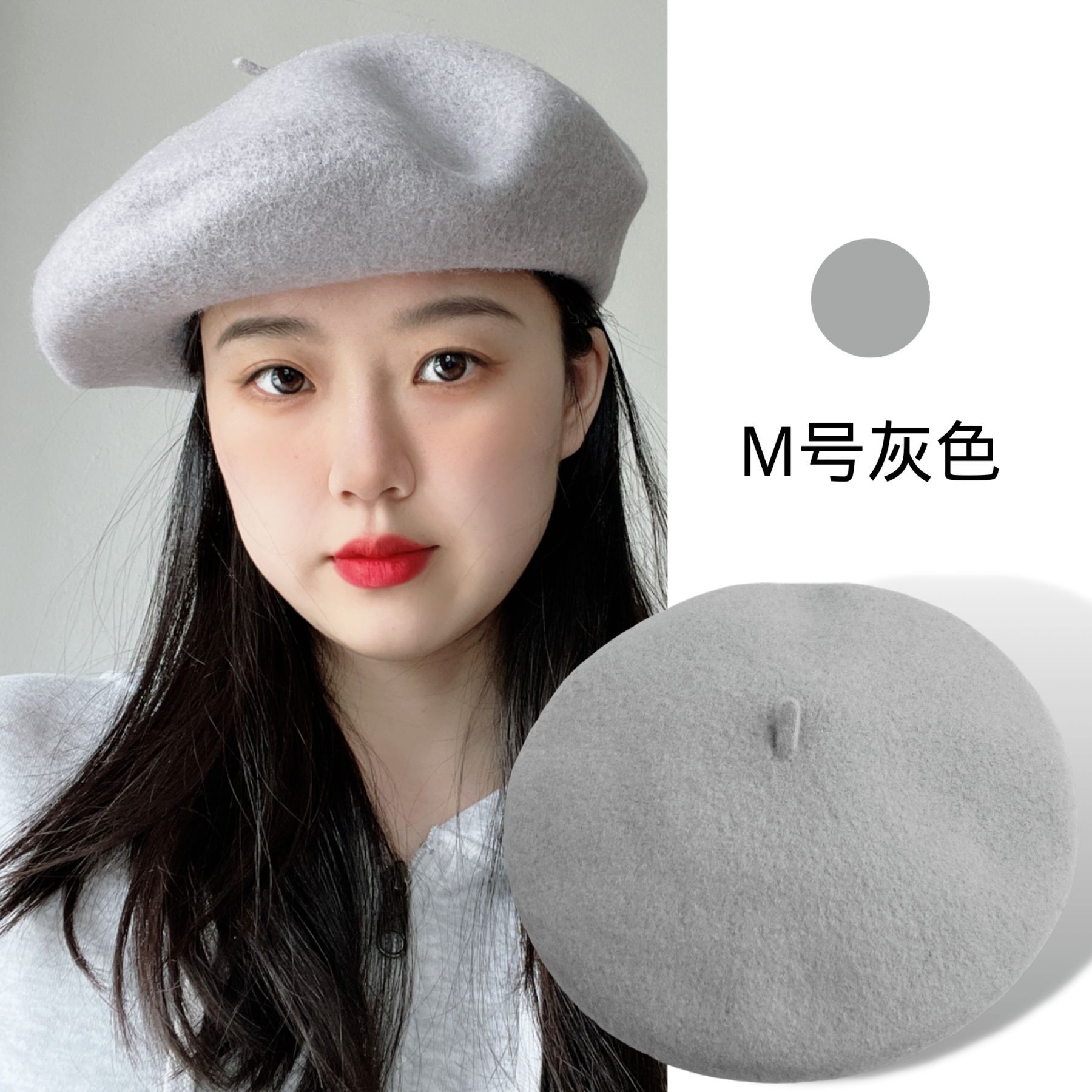 가을 겨울 신상품 크로스보더 패션 한국 스타일 니트 모직 모자 여성용 유럽풍 화가 모자 M사이즈 울 베레모