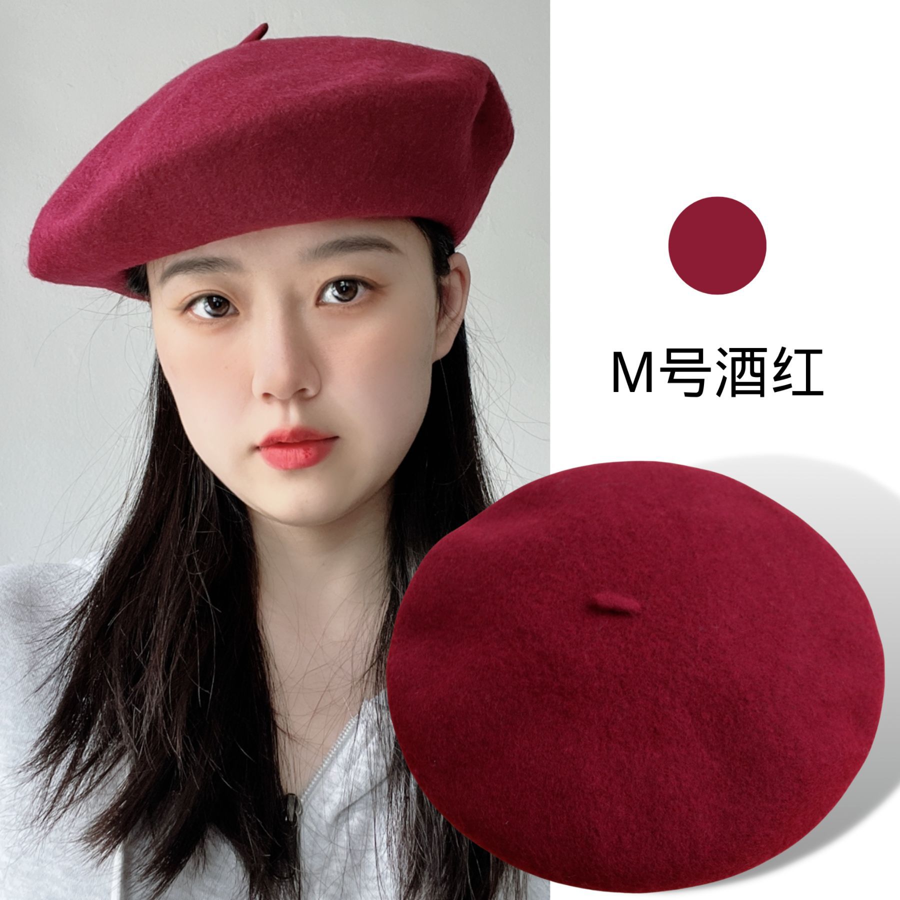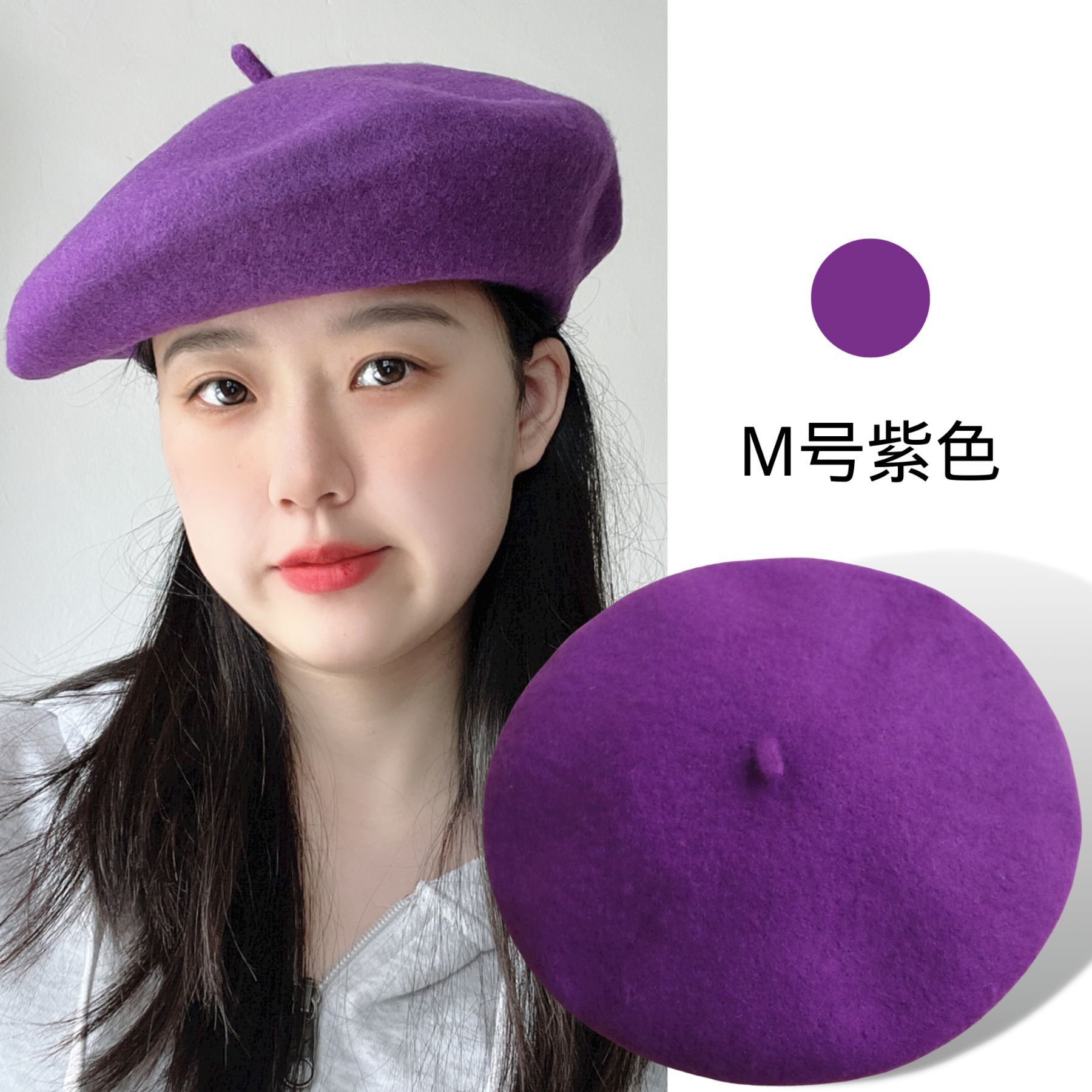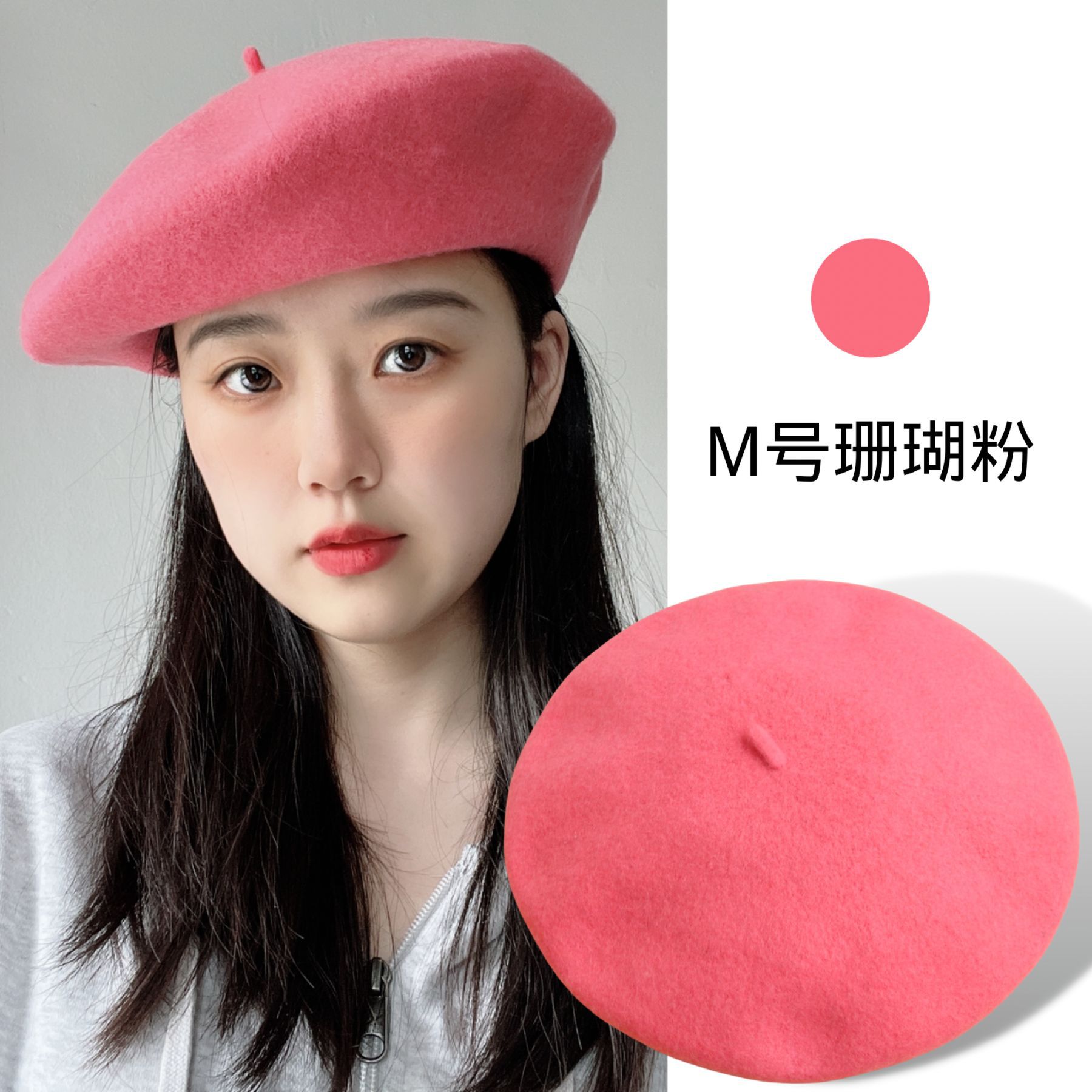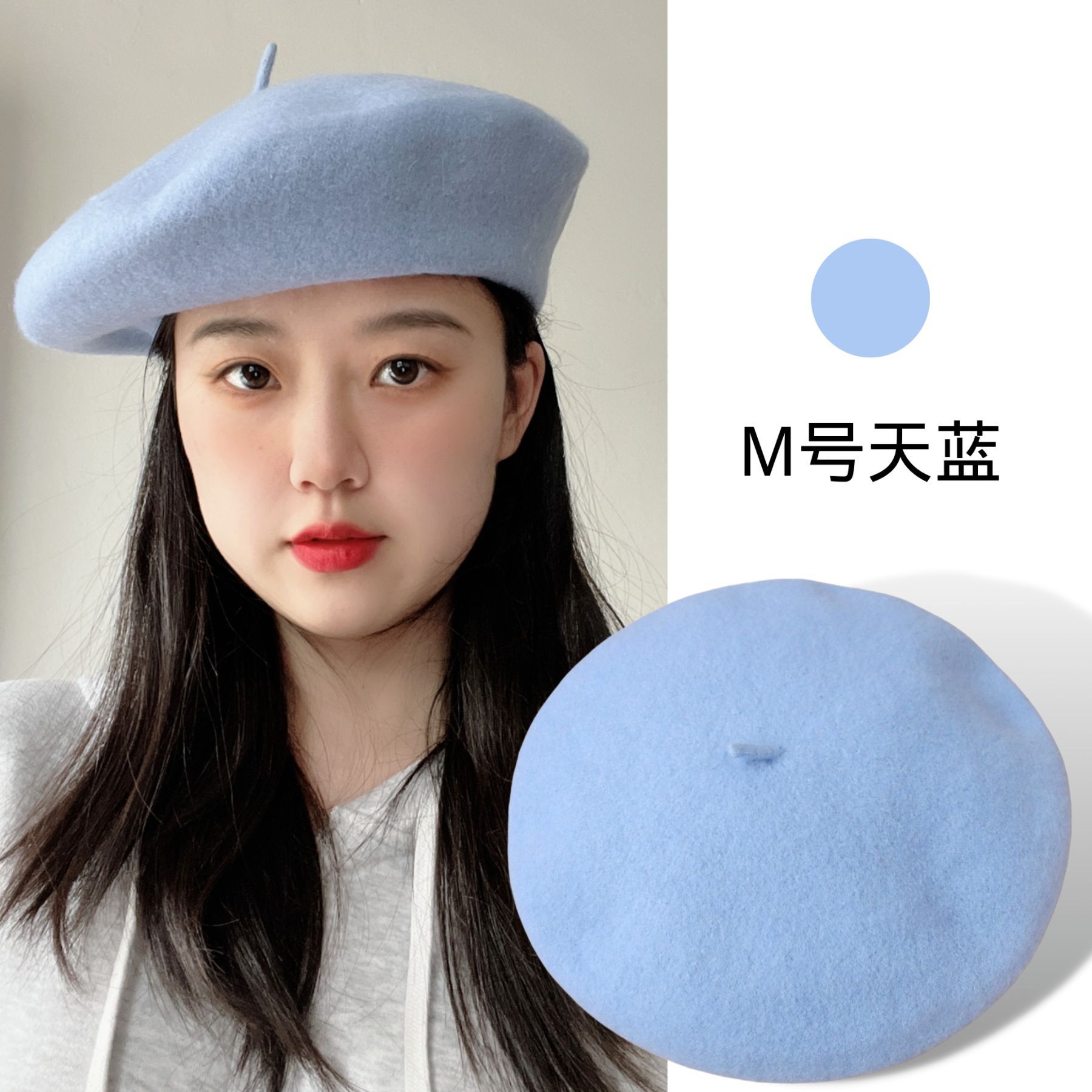 가을 겨울 신상품 크로스보더 패션 한국 스타일 니트 모직 모자 여성용 유럽풍 화가 모자 M사이즈 울 베레모