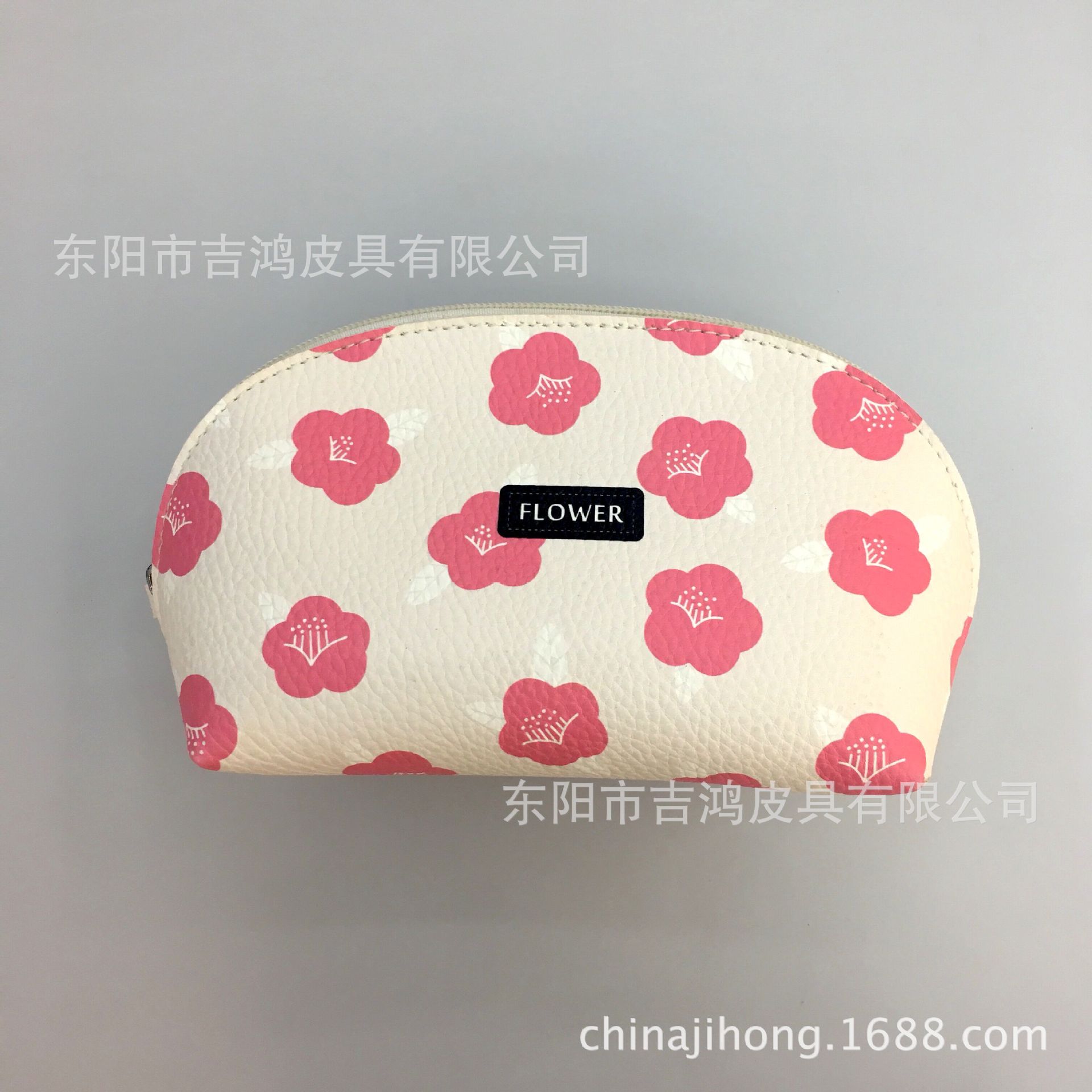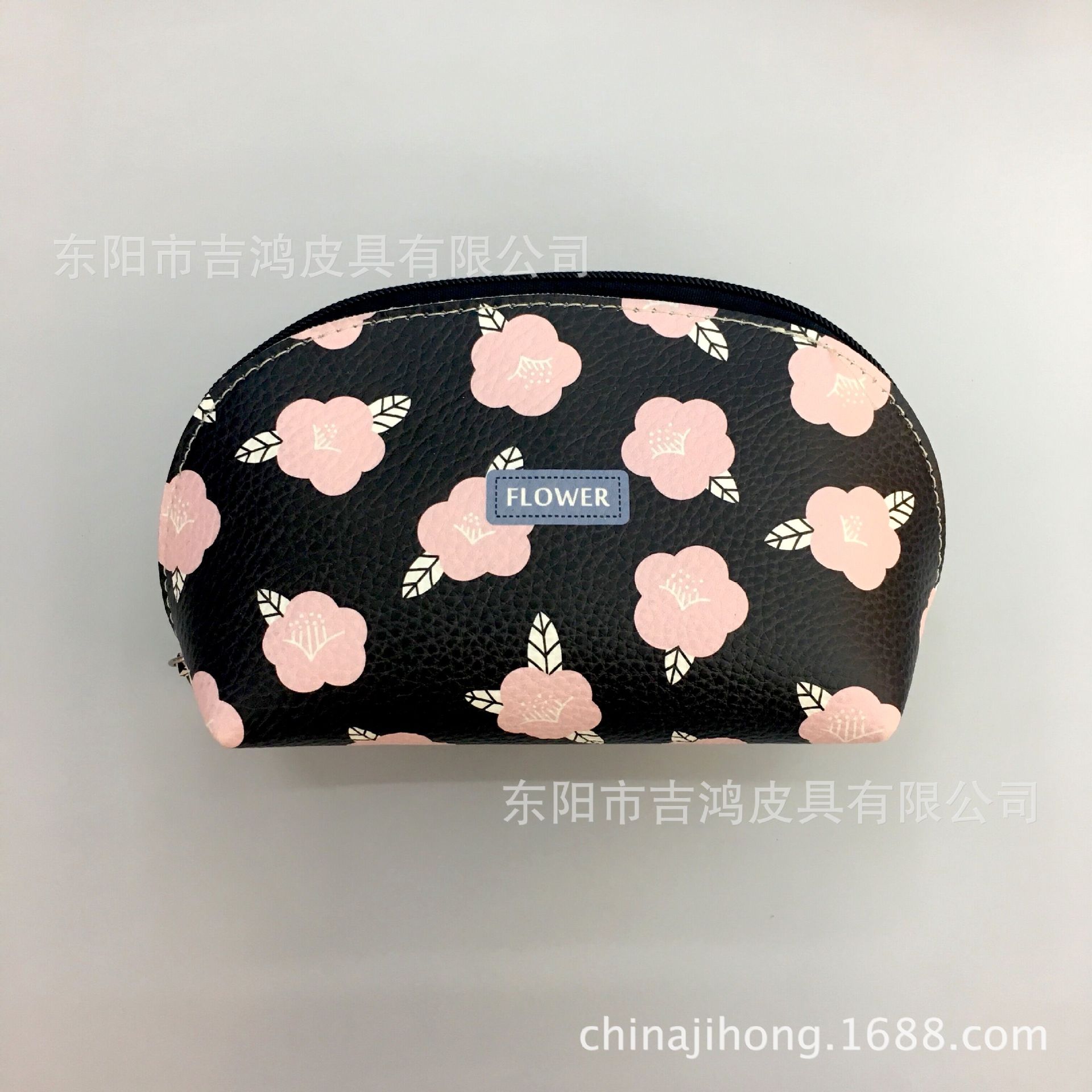 단색 꽃 화장품 가방 한국 스타일 방수 휴대용 저장 Pu 인쇄 세척 가방 소녀의 마음스토어 가기
