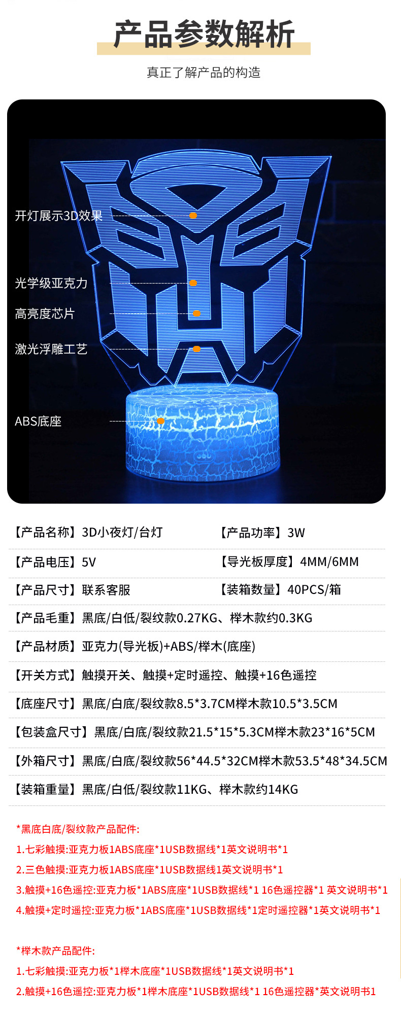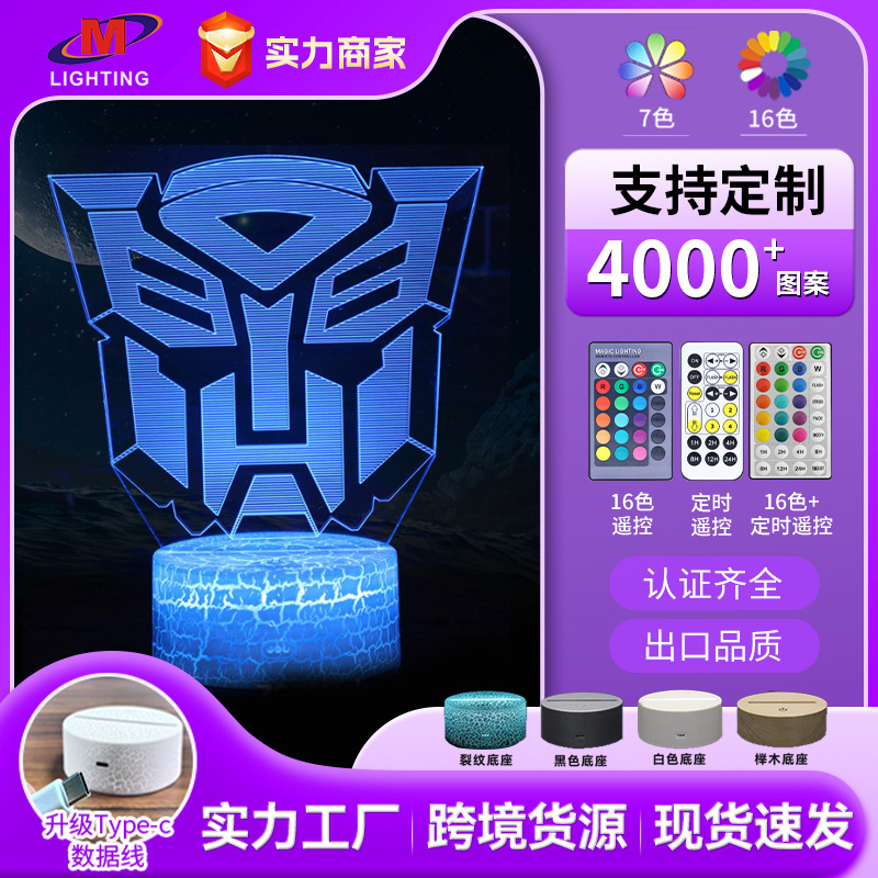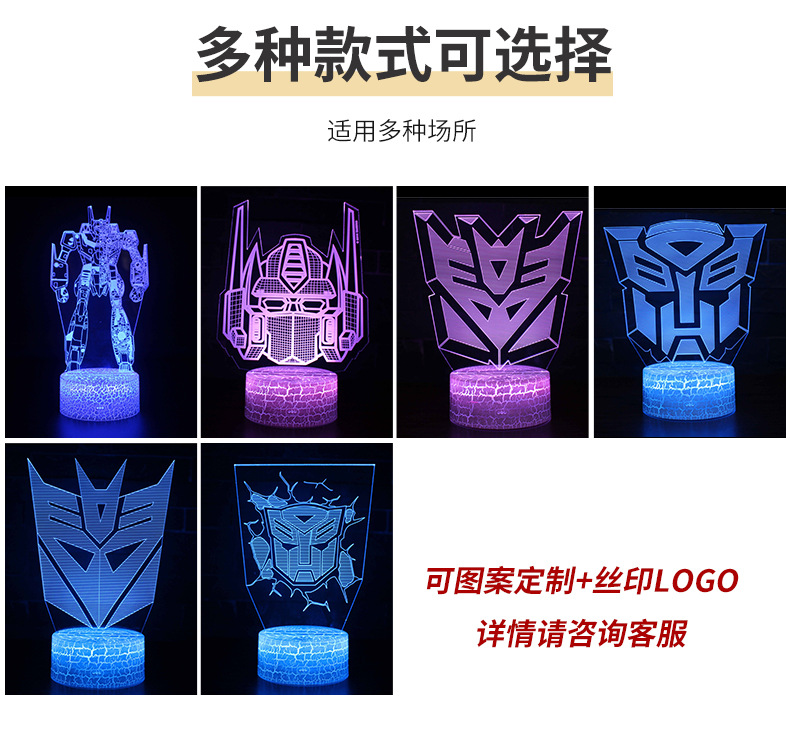 변압기 시리즈 전용 크로스 보더 3D 테이블 램프 LED 분위기 램프 창조적 인 선물 시각적 3 차원 야간 조명스토어 가기
