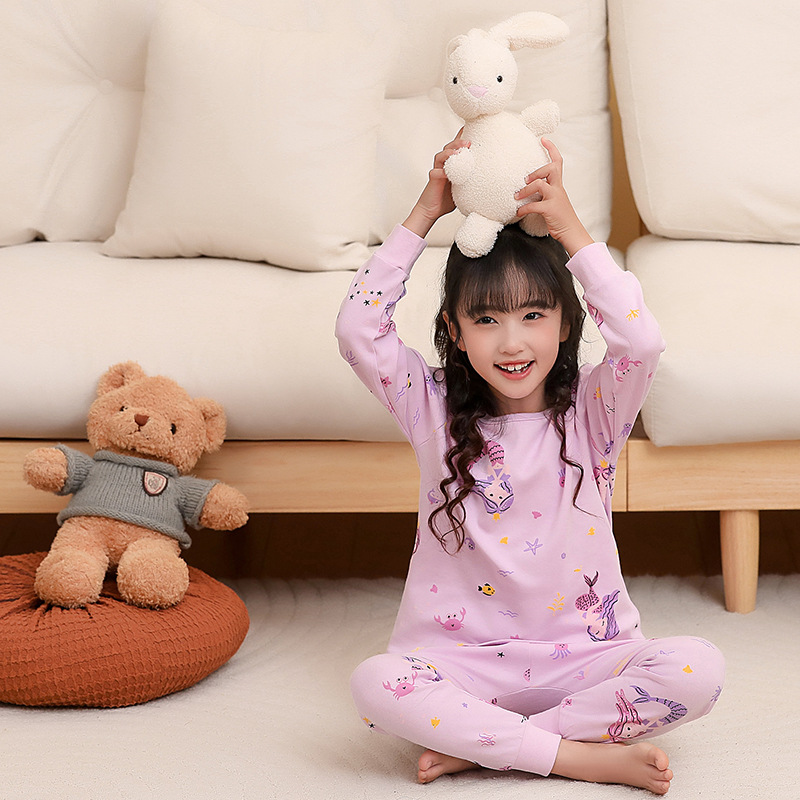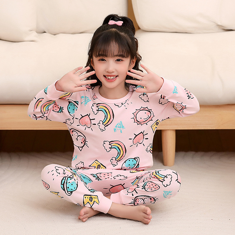 가을과 겨울 새로운 어린이 속옷 세트 면 소년 소녀 가을 옷 가을 바지 어린이 만화 따뜻한 가정 옷