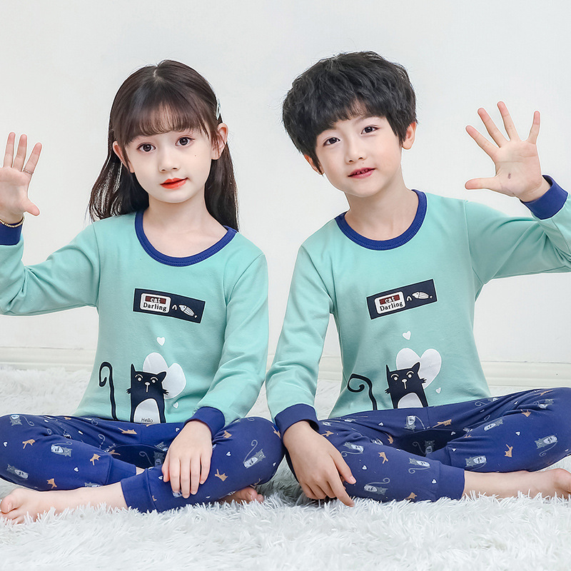 가을과 겨울 새로운 어린이 속옷 세트 면 소년 소녀 가을 옷 가을 바지 어린이 만화 따뜻한 가정 옷스토어 가기
