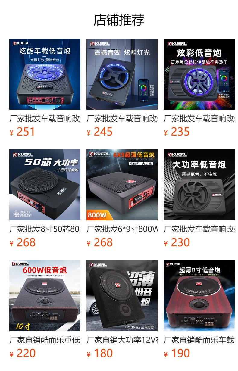 공장 직접 판매 Kuerle 자동차 오디오 8 인치 12V 초박형 자동차 서브 우퍼 아래 자동차 시트스토어 가기