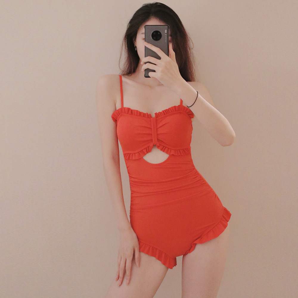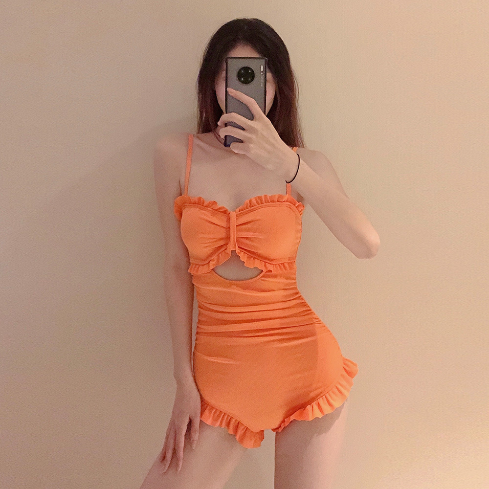 일본과 한국 스타일 멀티 컬러 원피스 비키니 섹시 슬림핏 푸시 업 스트랩 등이없는 하이 웨이스트 배꼽 커버 보수적 인 온천 수영복 여성용스토어 가기