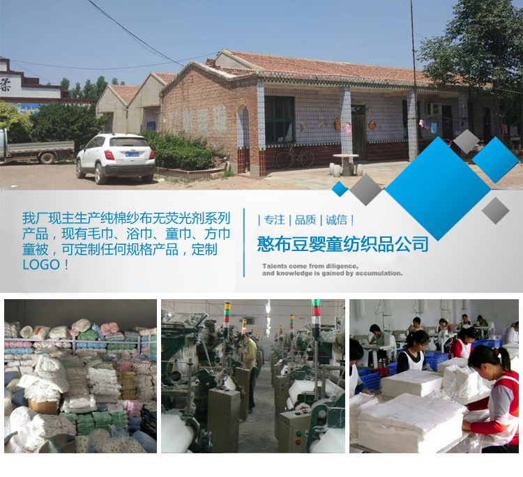 我厂现主生产纯棉纱布无荧光剂系列产品,现有毛巾 浴巾 童巾 方巾 童被,可定制任何规格产品,定制LOGO!