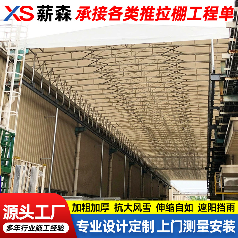 屋顶遥控电动轨道推拉棚工厂卸货区活动伸缩雨篷仓库悬空型推拉蓬