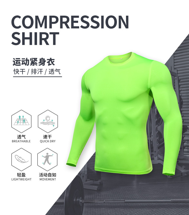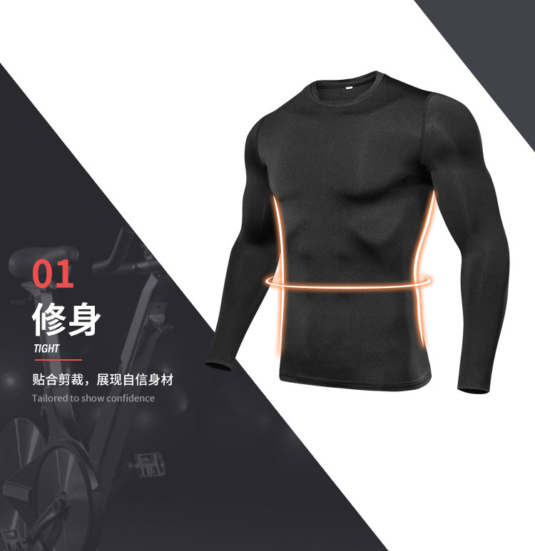 크로스보더 피트니스 세트 속건 스포츠 긴팔 피트니스 티셔츠 남성용 배구 언더셔츠 타이트한 통기성 러닝복 # L119A