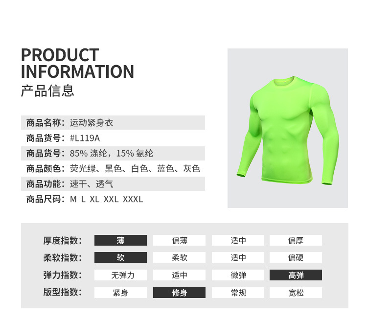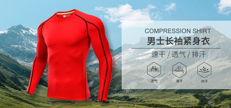 크로스보더 피트니스 세트 속건 스포츠 긴팔 피트니스 티셔츠 남성용 배구 언더셔츠 타이트한 통기성 러닝복 # L119A스토어 가기