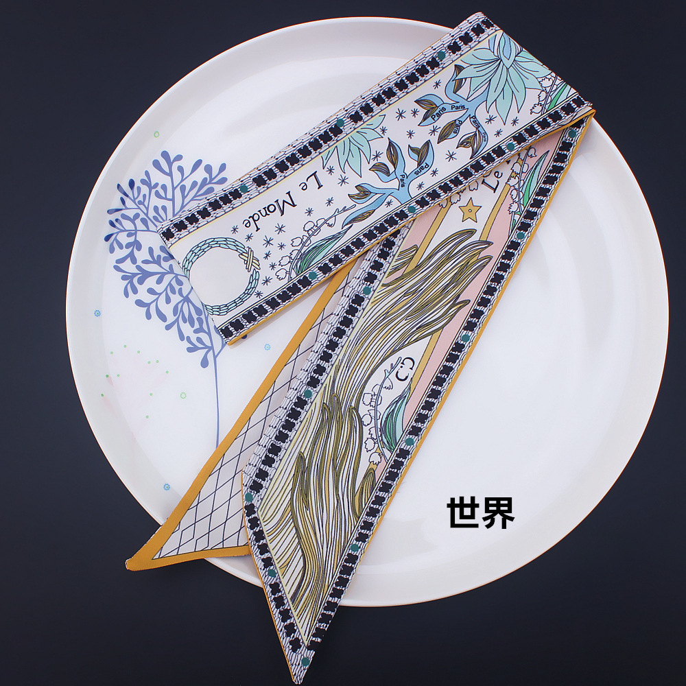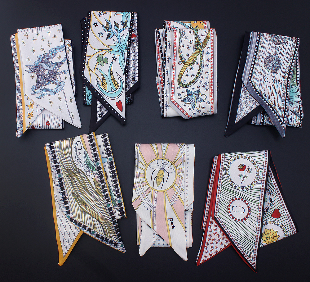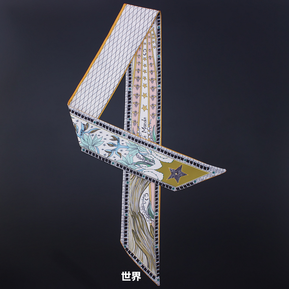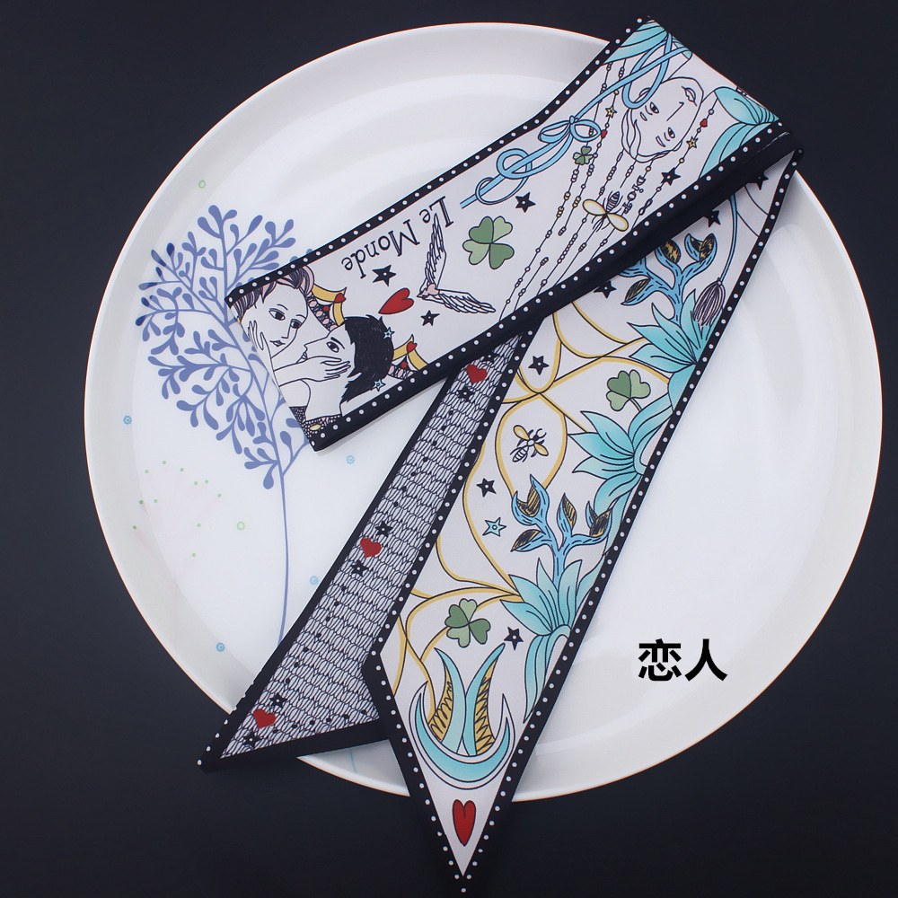 타로 시리즈 양면 인쇄 능직물 실크 타이 백 핸들 스카프 슬림 좁은 리본 스카프 여성용스토어 가기