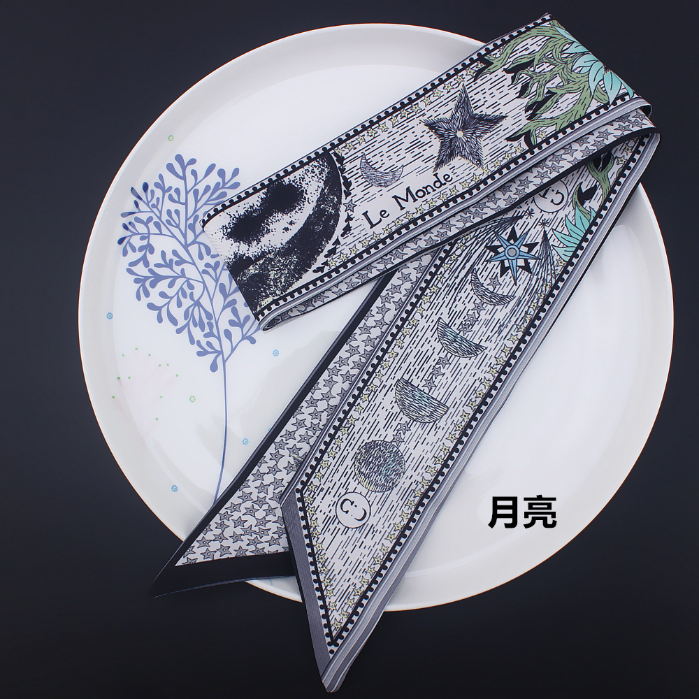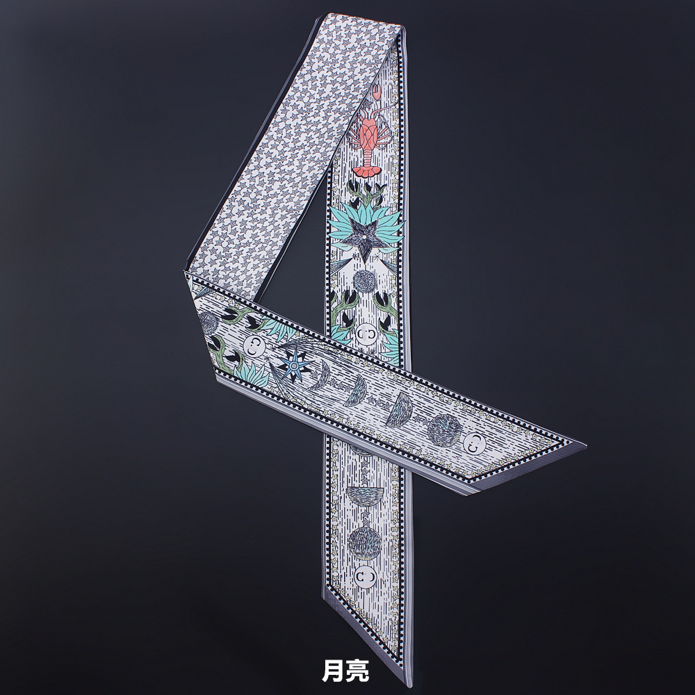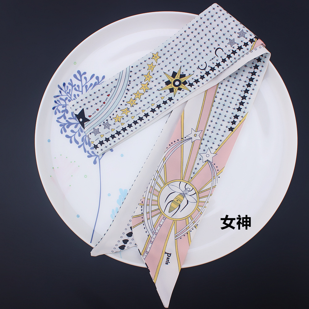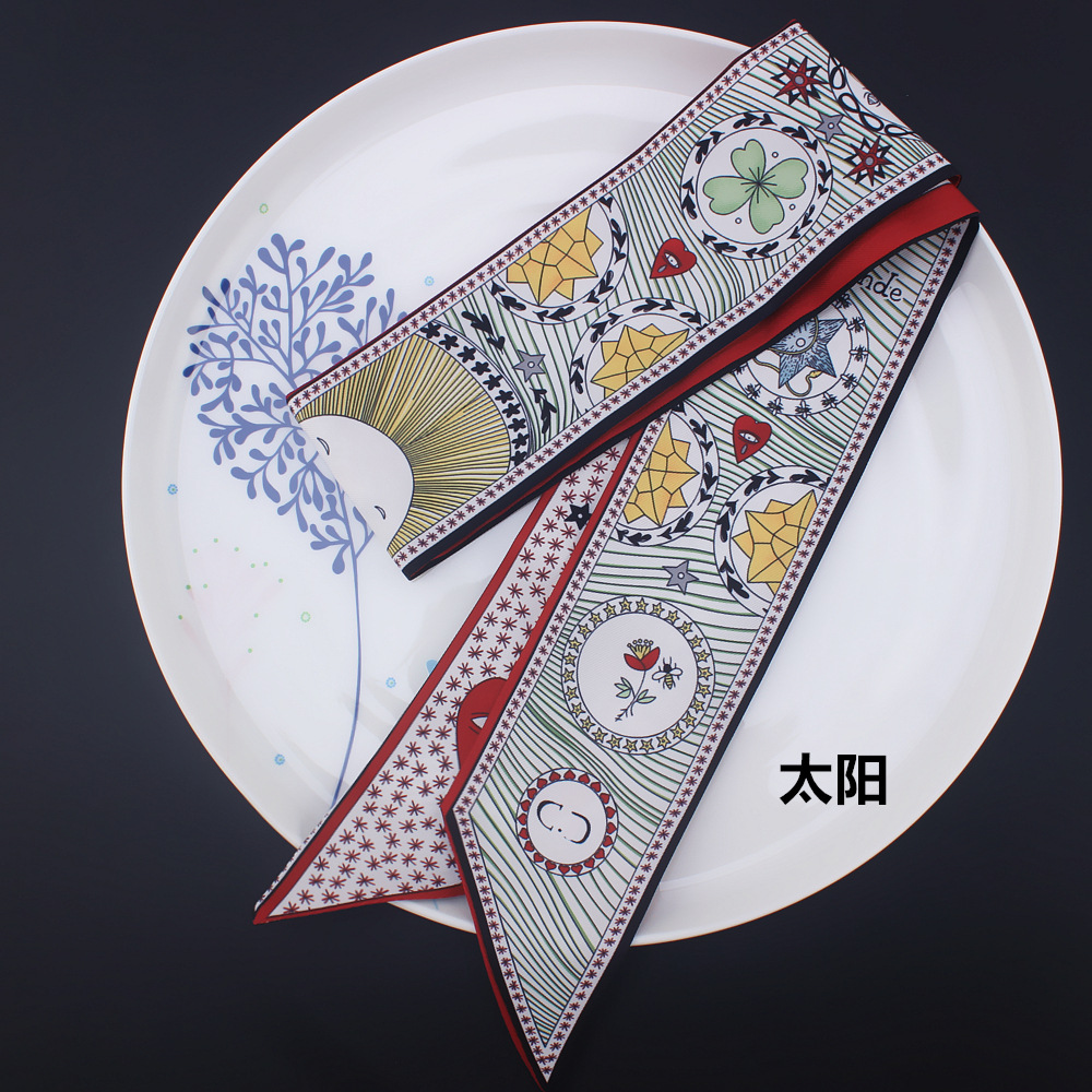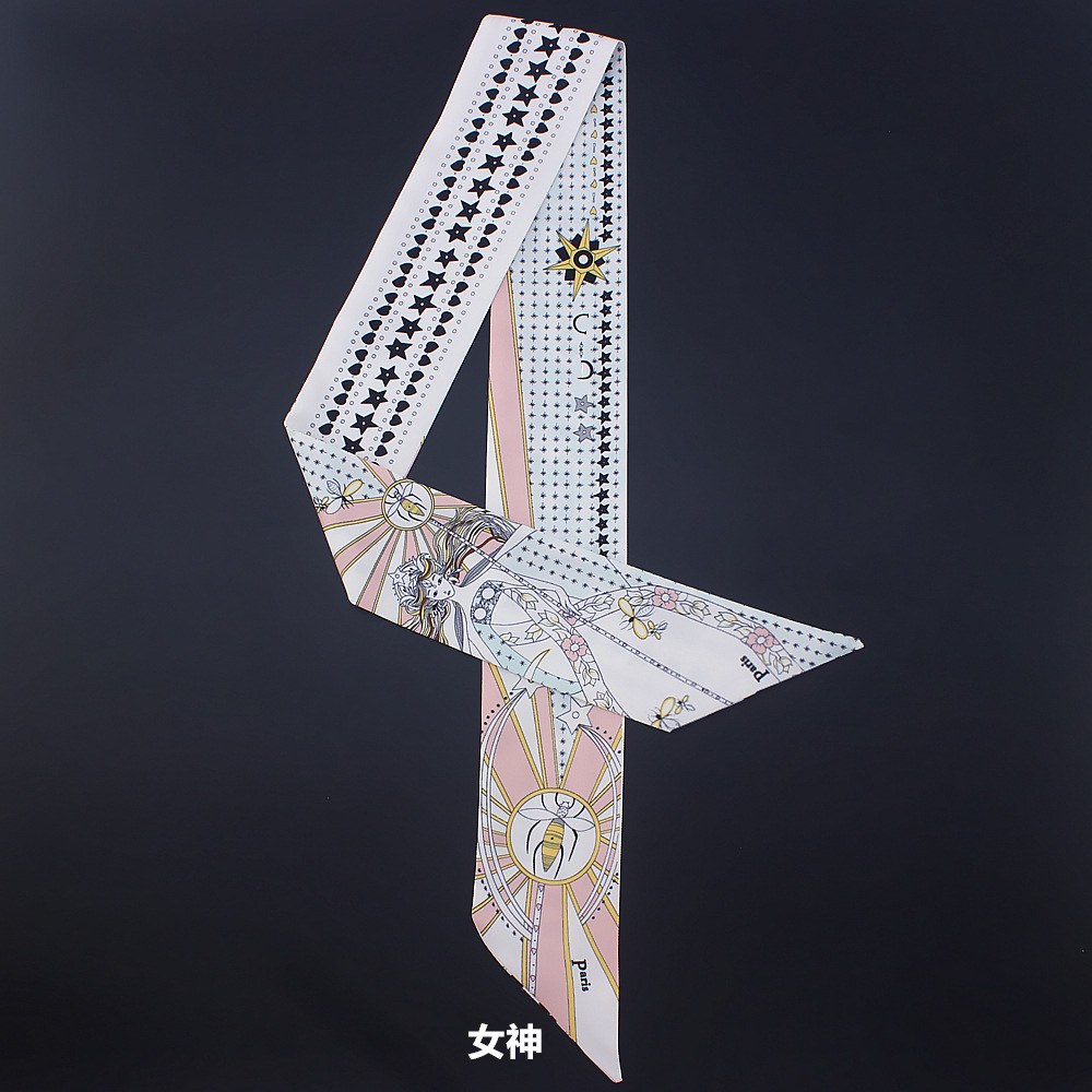 타로 시리즈 양면 인쇄 능직물 실크 타이 백 핸들 스카프 슬림 좁은 리본 스카프 여성용