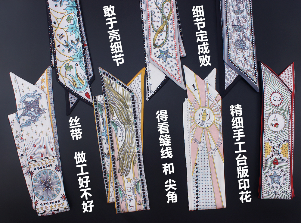 使用优质重磅斜纹缎面,手工制作,一条丝巾经过裁剪,手工缝制,手工整烫,包装等精心环节